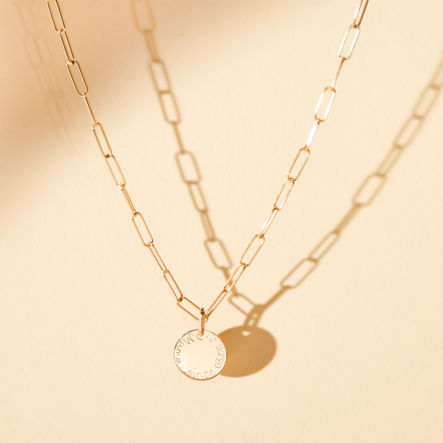 Our delicate Love Links necklace is the perfect personalised jewellery gift. Add your own unique hand-engraving to make it beautifully personalised to you. Available in 925 Sterling Silver and 18K Champagne Gold Plated.