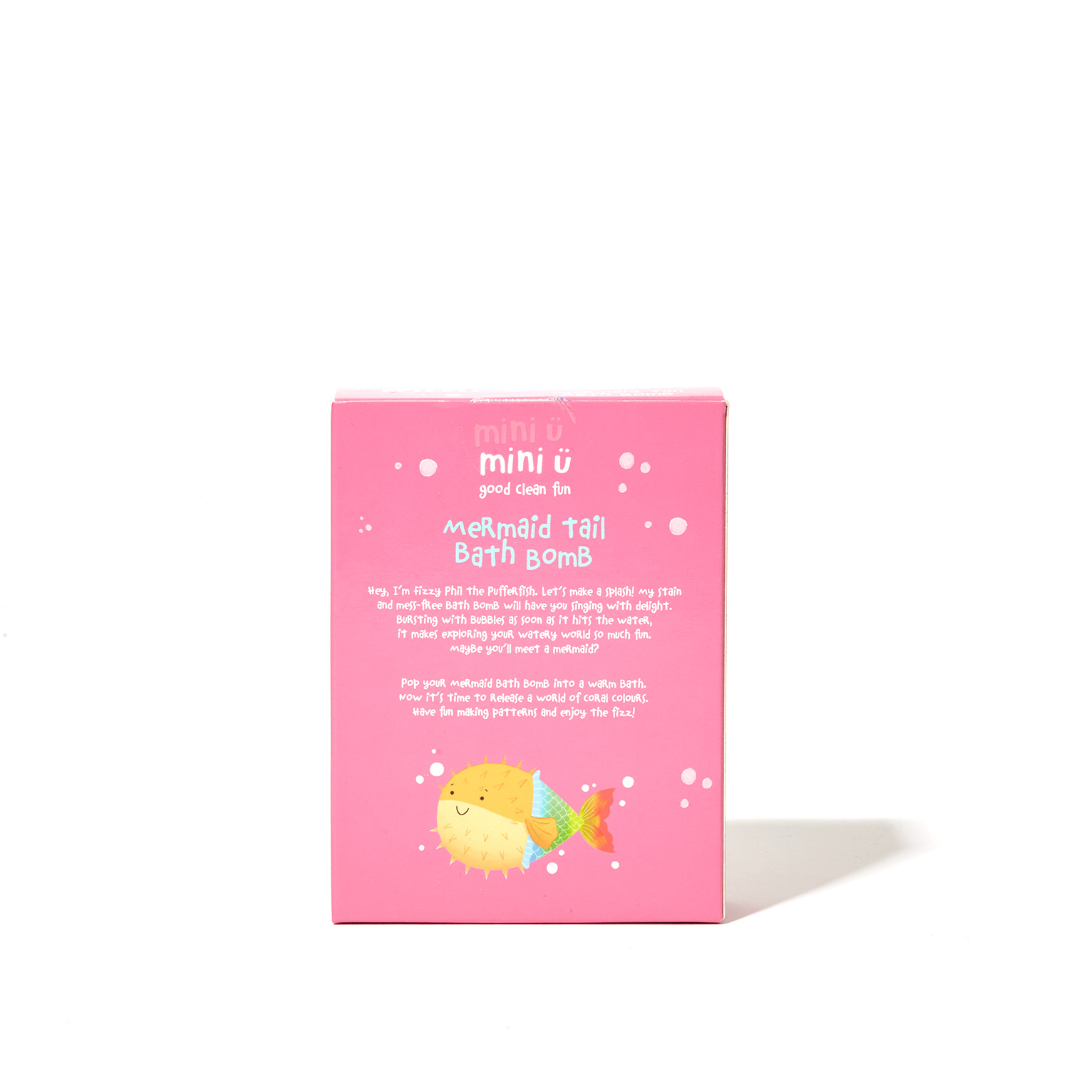 Hey, I’m Fizzy Phil the Pufferfish. Let’s make a splash! My stain and mess-free bath bomb will have you singing with delight. Bursting with bubbles as soon as it hits the water, it makes exploring your watery world so much fun. Maybe you’ll meet a mermaid? Pop your mermaid bath bomb into a warm bath. Have fun making patterns and enjoy the fizz!