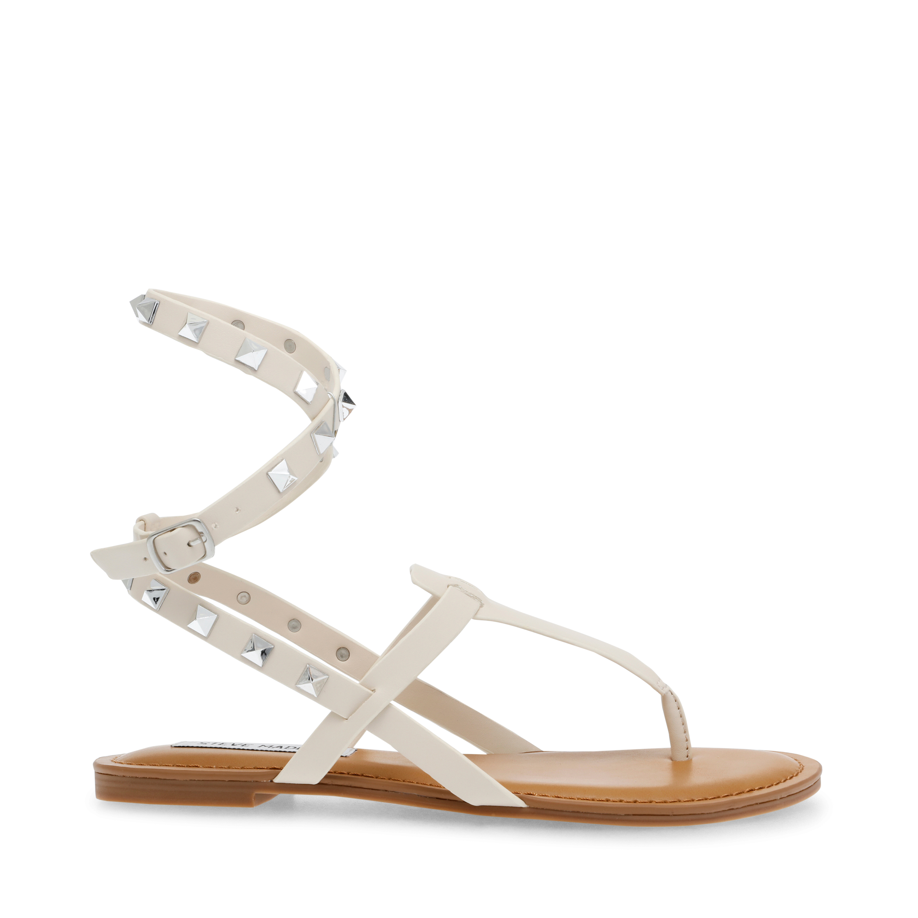 A thong toe sandal with gladiator style strap. Available in Rose Gold and Bone.