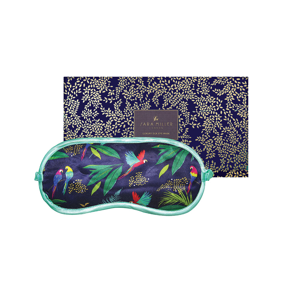 Relax and enjoy a peaceful night’s sleep with this playful parrot-print silk eye mask. Lightly cushioned, the eye mask sits softly on the face whilst blocking the light and the covered elastic strap ensures maximum comfort without damaging the hair. Silk, which is naturally soft against the skin, will help to retain moisture around the delicate eye area and provides the ultimate relaxing sleep. Wrapped in tissue paper and presented in a foil pressed gift box, this eye mask makes a wonderful gift idea.