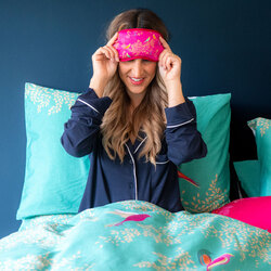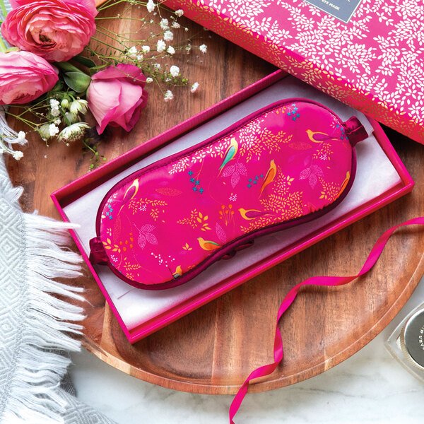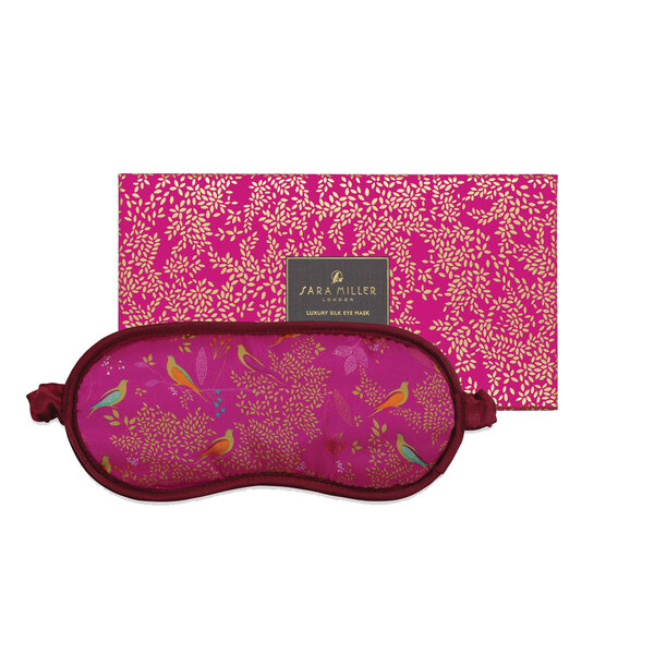 The Sara Miller Pink Birds Silk Eye Mask is lightly cushioned to sit softly against the face, designed to ensure you have a perfect night's sleep. The silk-covered elasticated strap ensures maximum comfort whilst preventing any damage to hair. Silk is naturally soft against the skin and will help retain moisture around the delicate eye area. Featuring exotic birds perched within glistening foliage, this luxurious silk eye mask is wrapped delicately in tissue paper and is presented in a beautiful foil pressed gift box – ideal as a gift or an indulgent treat for yourself.