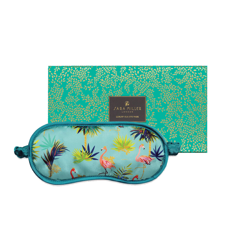 Get a perfect night’s sleep with the Sara Miller Tahiti Flamingo Silk Eye Mask. This silk sleep mask is lightly cushioned to sit softly against the face and features a silk-covered elasticated strap designed to prevent damage to the hair, ensuring a blend of comfort and style. Silk is naturally soft against the skin, meaning this mask will help to retain moisture around the delicate eye area. This silk eye mask features beautiful pink flamingos amongst colourful jungle foliage and is presented in a luxurious foiled gift box and makes the ideal gift for a loved one – or a luxurious treat for yourself!