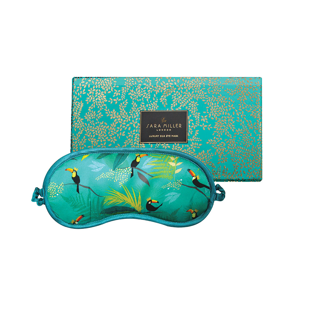 Ensure the perfect night’s sleep with this exquisitely made silk eye mask featuring lively toucans. The mask is lightly cushioned to sit softly against the face and the covered elasticated strap ensures maximum comfort whilst preventing any damage to hair. Silk is naturally soft against the skin and will help retain moisture around the delicate eye area. The mask comes beautifully boxed, making it the perfect boxed gift for someone looking for a luxurious eye mask for sleeping. Use at home or makes the perfect travel gift. Skip to the end of the images gallery