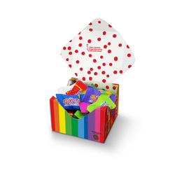 Now tiny Tony’s are even more shareable in this rainbow gift box. Who will you share your tiny snack moments with? It contains 20 tiny Tony’s in 8 classic Tony’s Chocolonely flavours: • Milk chocolate. • Milk caramel sea salt. • Milk almond honey nougat. • Milk hazelnut dark milk pretzel toffee. • Dark almond sea salt. • Dark chocolate. • White raspberry popping candy.