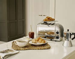 Bring a slice of British style into the kitchen with the iconic Classic NewGen Toaster from Dualit. Available in two-slot or four-slot versions, as well as an array of colours, this well-designed, award winning toaster has been hand built in the UK since the 1950s. Every part of this stylish countertop accessory is fully replaceable or repairable for a sustainable design that will stand the test of time. Key features include award winning ProHeat® elements, a mechanical timer, the option to toast bagels and buns and an adjustable rear foot to compensate for uneven surfaces. Each toaster also features the name of the assembler proudly presented on the base plate.