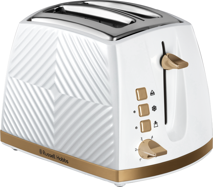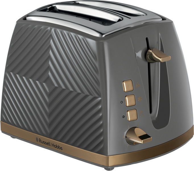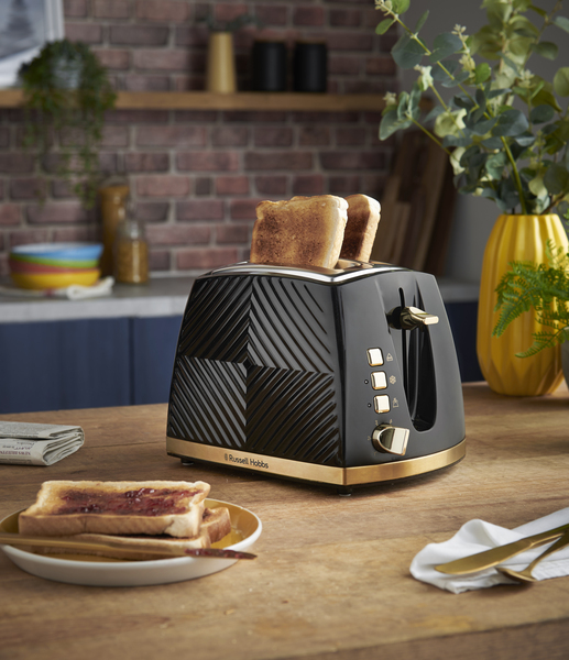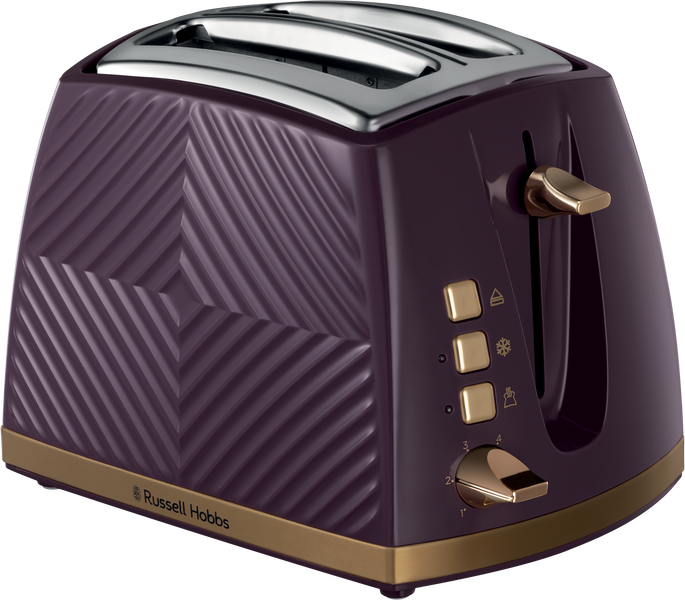 The Russell Hobbs 2-slice Groove Toaster combines design credentials with technical functions such as frozen, reheat and cancel functions, a high lift to save your fingers, and a crumb tray to keep things tidy. Wider slots and a 6-shade browning dial give you loads more toasting choices.
