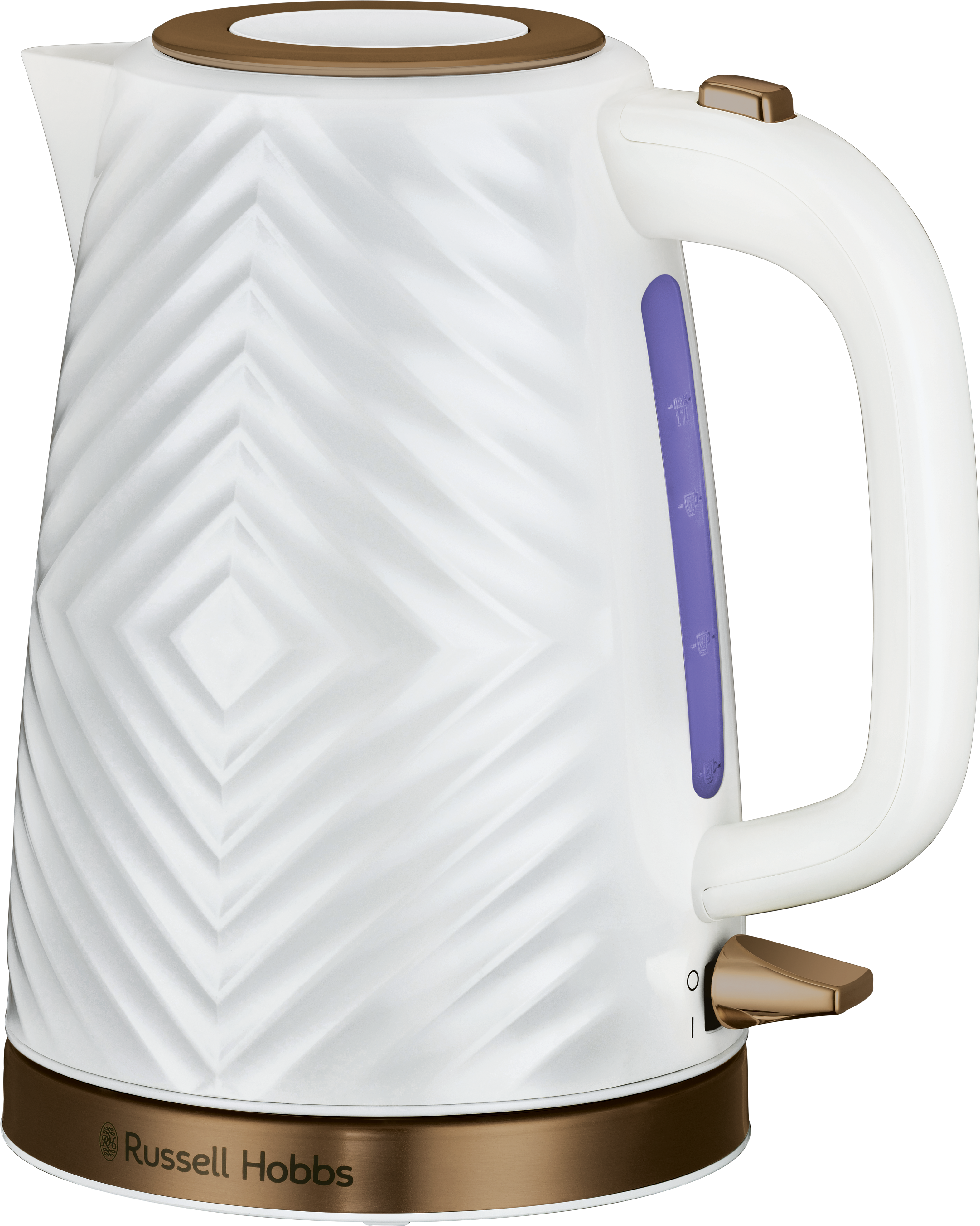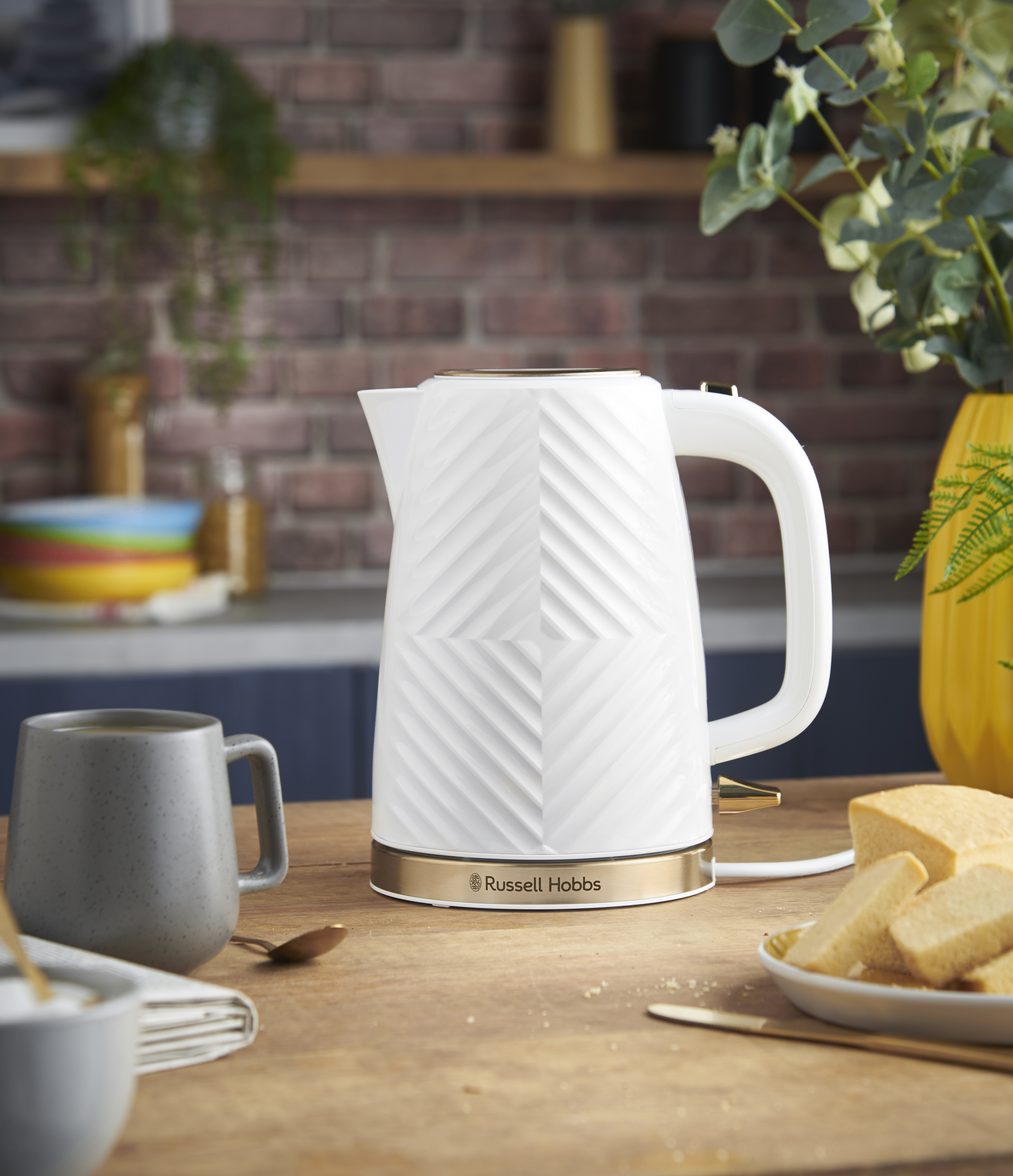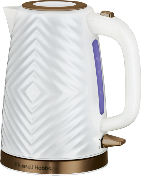 Textures never go out of style and this season Russell Hobbs White Groove Kettle with its chic, tactile finish and gold accents could be making a fashionable statement on your kitchen countertop. Its impeccable design and wipe-clean housing means it will always look its best. It’s been designed with all the functions and features that you’d expect from Russell Hobbs, including 1.7 litre capacity, perfect pour spout, water window and rapid boil markers. Need a hot drink straightaway? It takes a single cup of water to 100°C in just 44 seconds and uses 66% less energy. So, it’s stylish, functional and energy conscious too!
