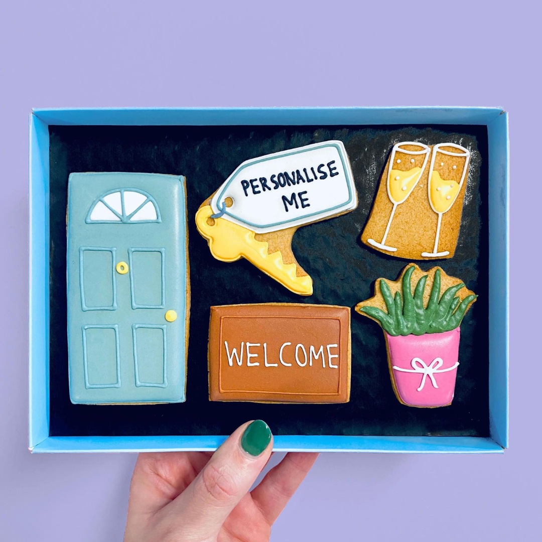 Congratulate them on their new home with a box of 5 delicious cookies! Make it extra personal and add their name or a message to the key cookie.