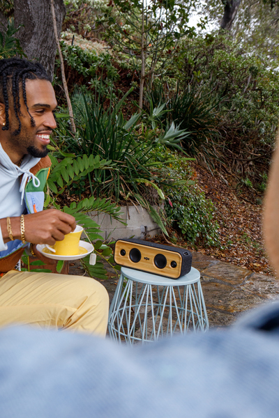 The Get Together 2 Bluetooth Speaker delivers exceptional audio clarity and unmatched sound experience. With a 20-hour battery life, quick-charge technology and an optional multi-pair mode, this innovative Marley must-have promises non-stop sounds. Dust-proof and water-resistant, the Get Together 2 speaker makes for a favourite travel companion, wherever you’re going. True to its roots, this speaker was crafted with natural bamboo and upcycled fabric made from plastic bottles to give new life to old materials. - 20-hour playtime - Multi-pair mode - 30-metre Bluetooth® range - Dust and water resistant (IP65 Certified) - Bass Boost, Acoustic, and Marley Signature Sound EQs Dimensions: 33.4cm x 11.7cm x 10.3cm Made with sustainable materials 100% plastic-free and recyclable packaging