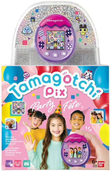 Tamagotchi Pix is expanding with a Party theme that allows your Tamagotchi character to plan a party with themed cooking and games, and new characters in a confetti-styled shell! Tamagotchi Pix is the brand-new generation of your beloved interactive virtual pet. Available from Smyths/ The Entertainer/ Amazon/Very
