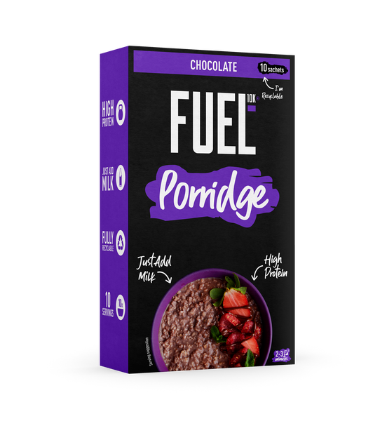 10 x 36g sachets, porridge sachets are fully recyclable. Suitable for vegetarians, FUEL10K’s porridge recipes are made with the finest rolled oats and boosted with milk protein to make a seriously tasty porridge that doesn’t compromise on convenience or nutrition.