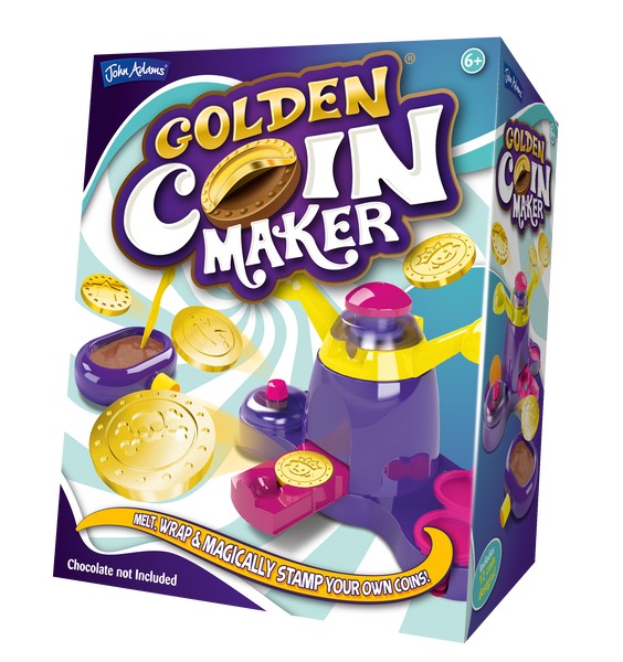 Golden Coin Maker from John Adams Melt, wrap and magically stamp your own chocolate coins. Melt, mould and stamp chocolate coins. It’s fun, easy, safe to do and makes a perfect gift for family and friends… or a special treat just for you! Use your own chocolate buttons or chocolate pieces to make your coins. This amazing mini factory makes chocolate coins and medals wrapped in golden foil Use any brand of chocolate (not included) No batteries required Suitable for ages 6+