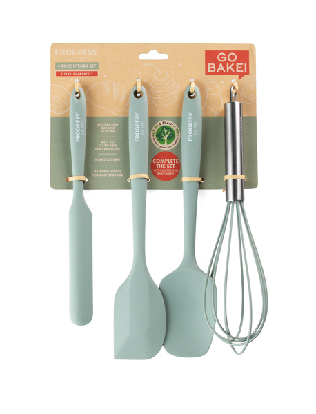 - Perfect for making your favourite cakes, biscuits and more, this 4-piece utensil set by Progress fulfils all your baking needs. - This set is made from strong, durable silicone and contains a mixing spoon, spatula, whisk and scraper, great for family baking. - Brilliantly non-stick safe and suitable to pop in the dishwasher after use, these baking tools are great for a quick and easy clean. - These cooking utensils are conveniently heat-resistant and are finished with handy hanging hooks for simple and compact storage. - Part of the Plant A Tree initiative, a tree will be planted for every Go Bake! Utensil Set sold, progressing towards a greener future.