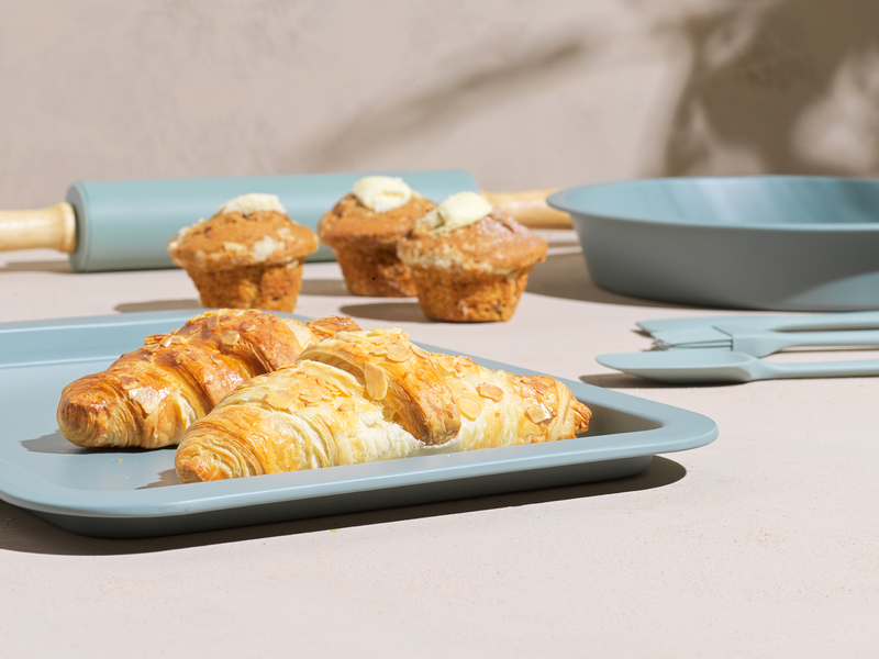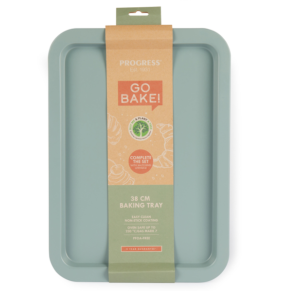 Brilliantly lightweight yet sturdy, this 2-piece 38 cm Progress Go Bake baking tray set is the perfect addition to your bakeware. Useful for cooking chips, baking cookies, pastries and more, the oven trays are PFOA-Free ensuring no harmful chemicals are released. Finished with a stunning teal colour, the cookie trays have convenient non-stick coating, ensuring your bakes will slide off easily. - Once finished creating your tasty masterpiece, simply hand wash the baking sheets in mild detergent to maintain the finish. - Planting one tree per product purchased; Progress is committed to an environmentally sustainable future for our customers and planet.