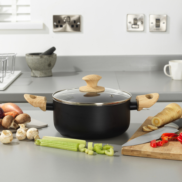 - Progress are taking sustainable steps to grow a greener future, by planting a tree for every 20 cm Scandi Stockpot sold. - Made from pressed aluminium and wonderfully PFOA free, this pan has a Smartstone non-stick coating to ensure hassle free cooking. - Suitable for dishwasher cleaning and metal cooking utensils, this fantastic stockpot measures 20 cm, great for preparing hearty family meals - PFOA-free and induction friendly, the stockpot has a comfortable induction wooden handle for simple manoeuvring around your kitchen. - Combining functionality with style, the Nordic inspired stockpot has wood effect finish which will look great in any kitchen setting.