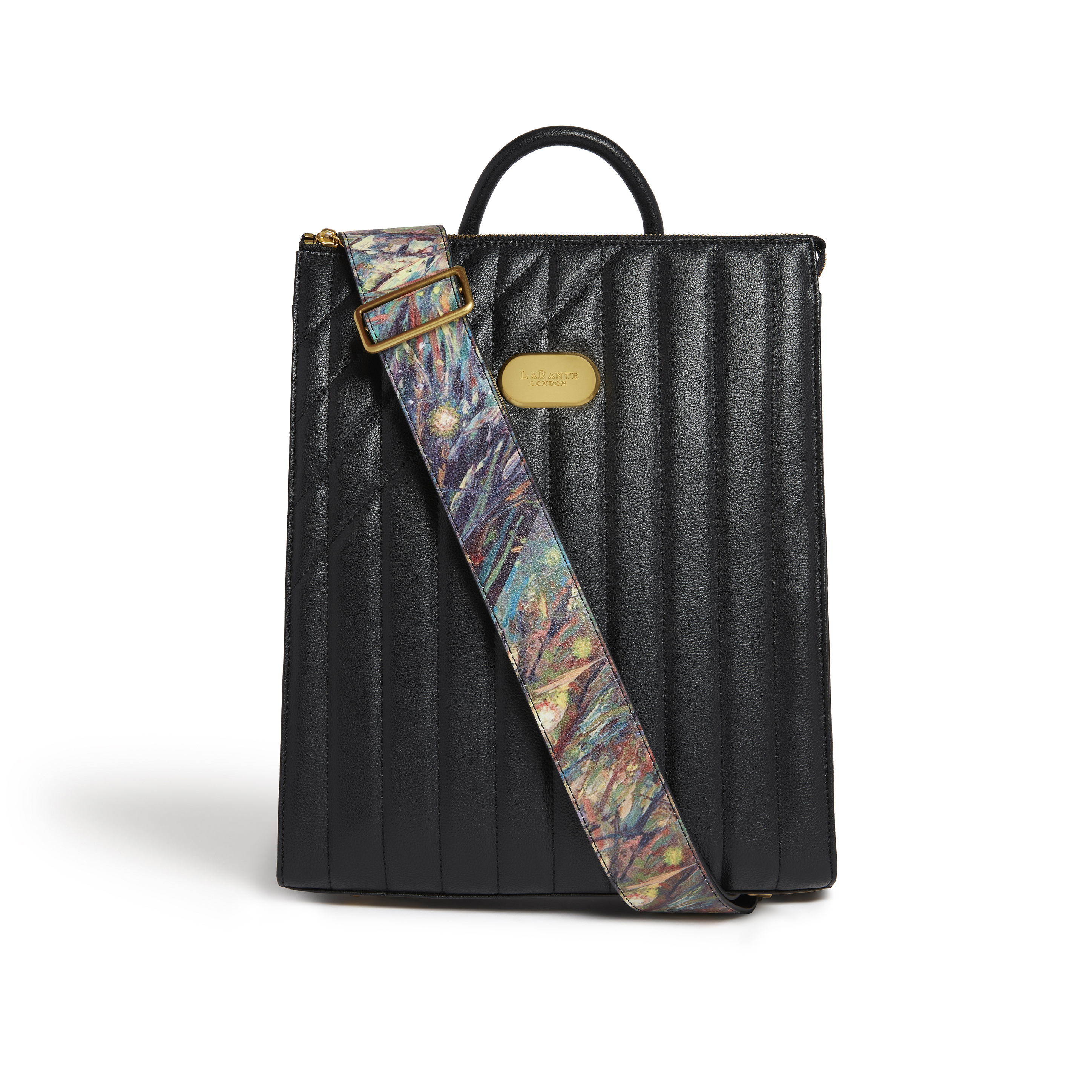 Dimensions(cm): Length 29cm Height 36.5cm Depth 12cm Long strap Adjustable (cm) 65-100cm Backpack Straps Adjustable (cm) 50-100cm Women's Backpack The Danai Backpack is part of the LaBante x Iris Collection. This is a collaboration created for people who love Art and everything it stands for. Iris Scott is a famous artist based in the US and has curated this collection for LaBante. Merging her impressionist handmade paintings onto the straps, each bag is transformed into little sculptures of wearable art. Wear the Danai as a backpack or a crossbody bag with its multi-strap options. It includes an Iris Scott designer shoulder strap as well as detachable backpack straps. It is a multi-functional bag that includes an inside zipper pocket for your keys or phone as well as a sturdy compartment for your 15-inch laptop. All bags feature the LaBante secret message inside the bag. Cruelty-free microfibre combined with recycled plant-based leathers are used to make this collection with inners from recycled plastic bottles and the metal trims being responsibly sourced. Comes with a cotton dust bag in a white gift box.