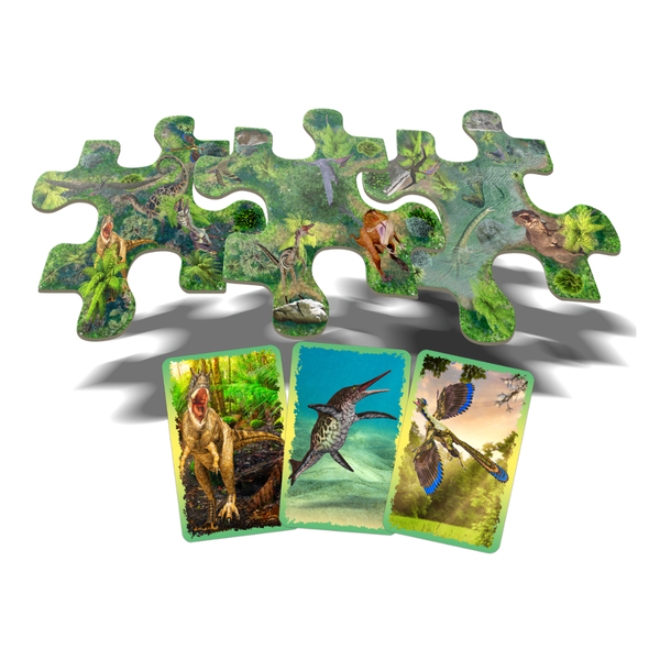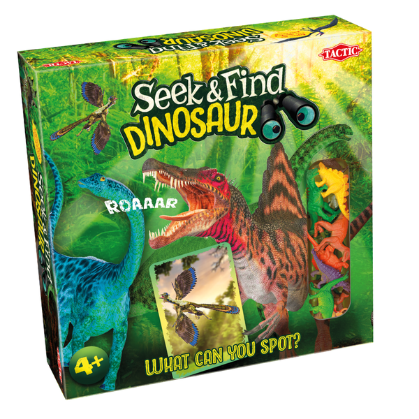 New for Spring 2023! Can you find all the dinosaurs hiding in the jungle? The game board is full of ancient reptiles, but can you find them all before the other players? Double-sided puzzle game board with two difficulty levels makes each game different. Comes with a booklet with a nugget of information about each dino. Age 4 years+