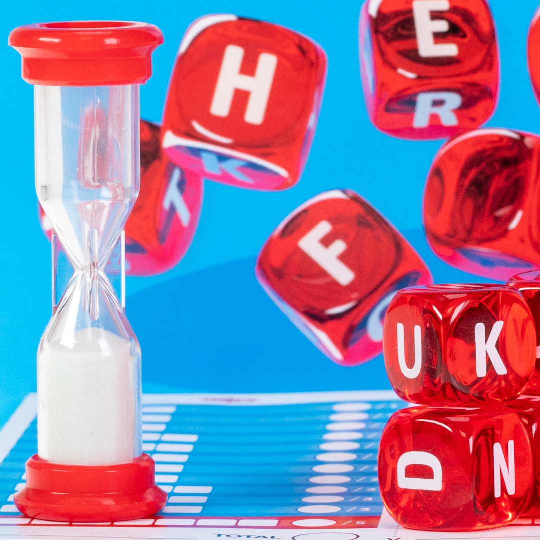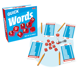 New for 2023! Words is a fast-paced word game with plenty of variation! Find words on the letter dice! Form words from the letters on the dice while the sand in the timer keeps running. The catch is, you won't get points for any words that appear on your opponents' sheets! Age 8 years+