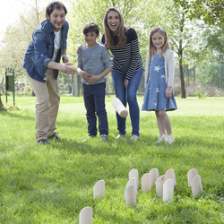 Mölkky is the number 1 outdoor game in the world! Plan your throw on every go in the outdoor game with a difference. Every skittle scores a little… But the more you score, the further apart the skittles get! Beautifully made in real wood, Mölkky is a simple and hugely-popular family game. Set the skittles in place… Take aim and throw the pin: reach 50 points to win! Score OVER 50 and your total drops down to 25. Perfect for beaches, parks, picnics, playgrounds and gardens. 2+ players; age 6+.