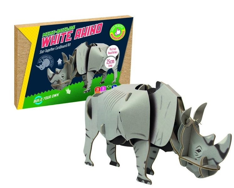 Easy to assemble using slot-together techniques – there’s no glue, no mess, no fuss. Everything you need is provided in the kit – simply follow the instructions: press out the pre-cut parts, build and play! Discover and learn more – comes with a press-out White Rhino Fact Stand created to help children find out more about this critically endangered species. There’s also an information card to educate on the threats to white rhinos and the vital protection work of the World Wildlife Foundation (WWF). Made using 100% sustainable cardboard and paper, the Build Your Own White Rhino is not only fun and engaging to play with, but also eco-friendly. With 20 press-out parts and an estimated build time of 20 minutes. Giving back to protect: For every White Rhino kit purchased, Build Your Own will donate a percentage of the profit to the WWF.