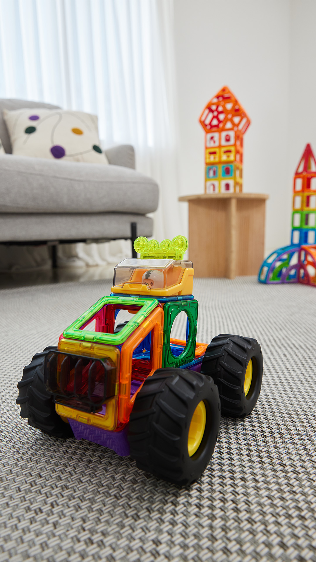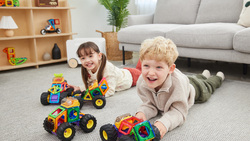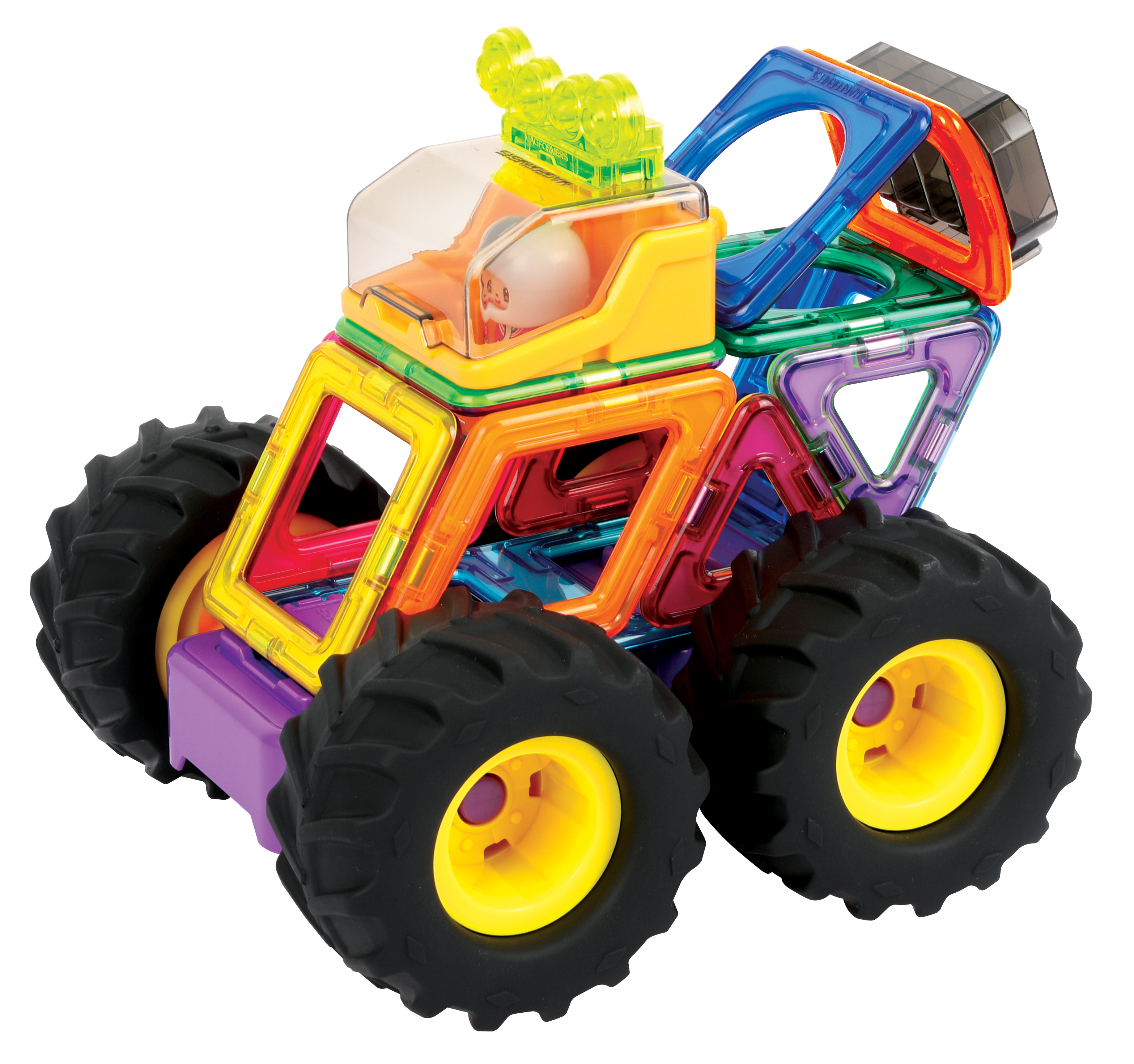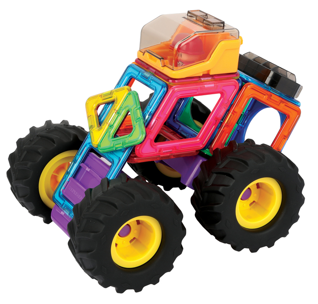 The 23-piece Giant Wheel Set is our first ever vehicle set with monster wheels and enables children to make a range of 'monster trucks' and other vehicles with mega-tyres, like tractors. It contains 16 Magformers magnetic tiles in six different shapes, all featuring our revolutionary Rotating Magnets System (RMS) – spinning barrel magnets safely sealed inside each shape so pieces always attach. Not only that, there’s a fab little detachable driver character and new accessories to make this a superb, fun, creative toy for the car-mad kid.