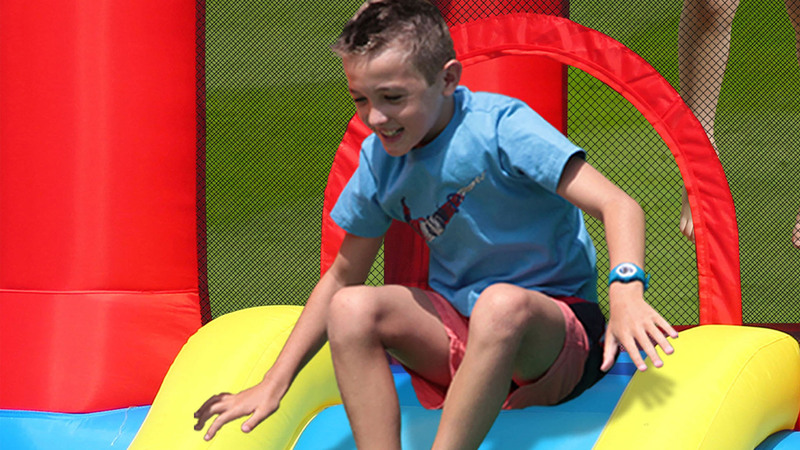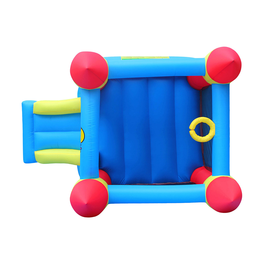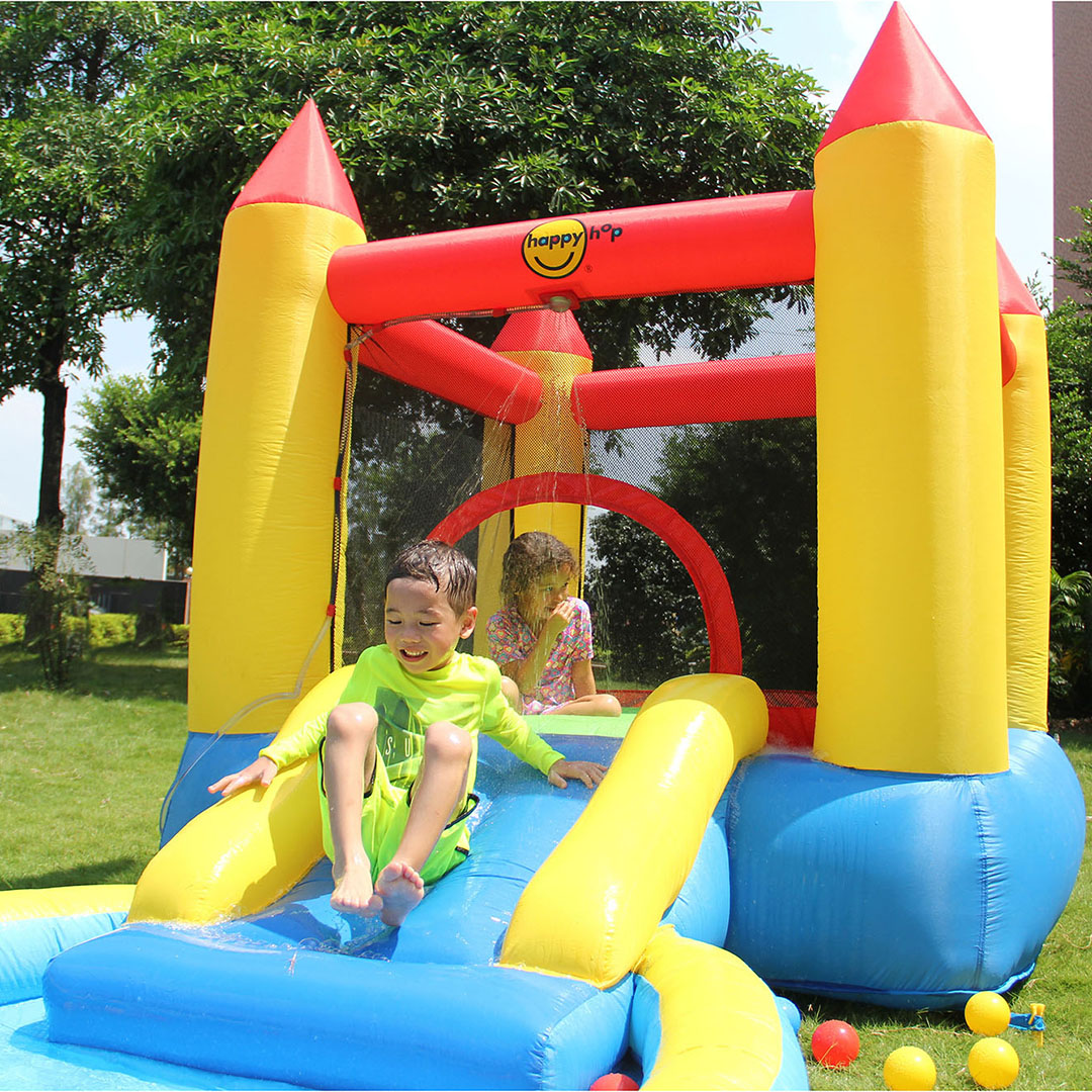 The Happy Hop Castle Bouncer with Slide and Hoop is colourful design that helps kids learn to aim with the hoop. The slide makes for a fun ascend and descend on the bouncer. Enclosure nets provided safety as well as allowing adults to see their child bounce. It is easy to deflate, fold, roll and pack away – before being transported in the carry bag. The air blower provides constant airflow, and ground anchors keep the bouncer secure. A repair kit is provided for any punctures to the bouncer.