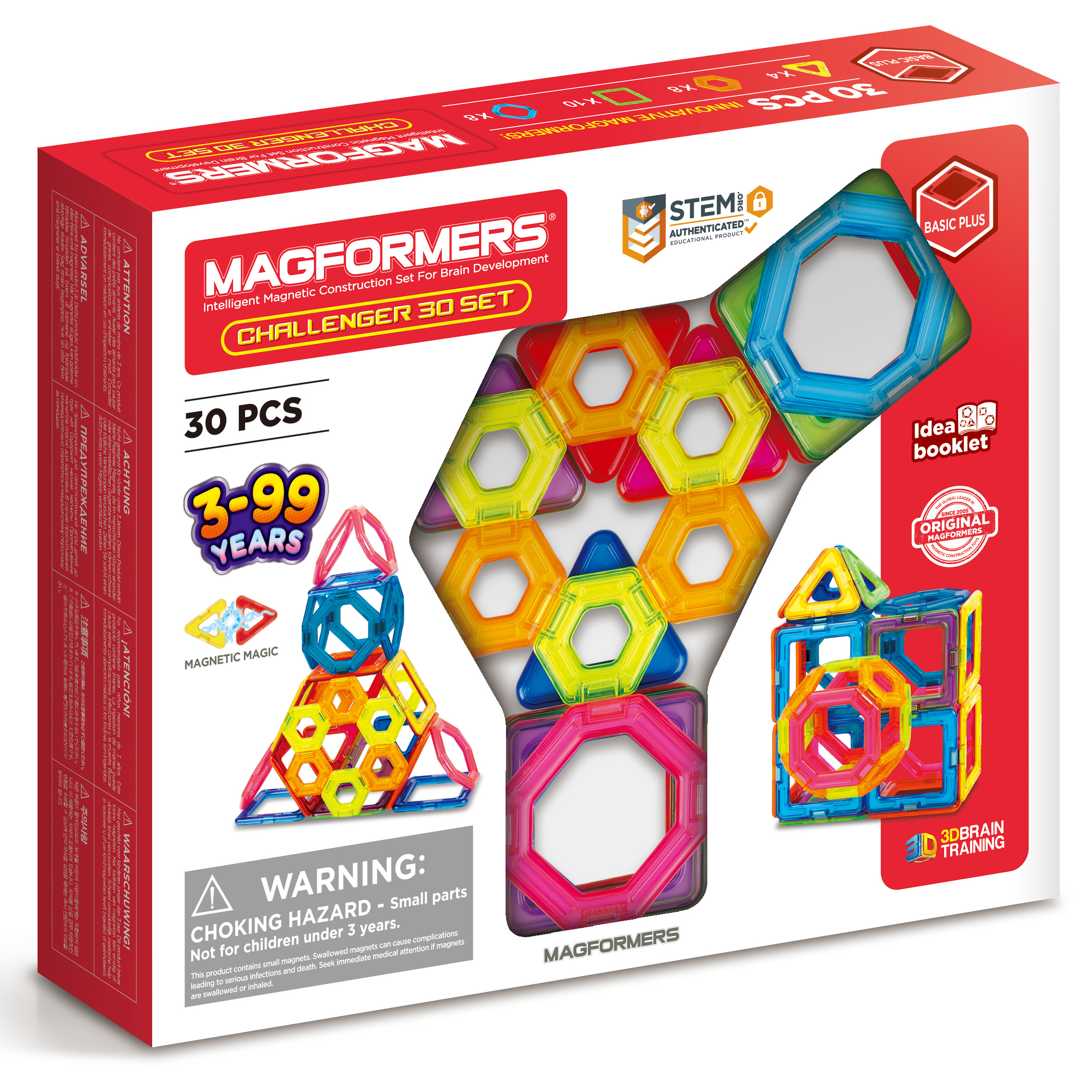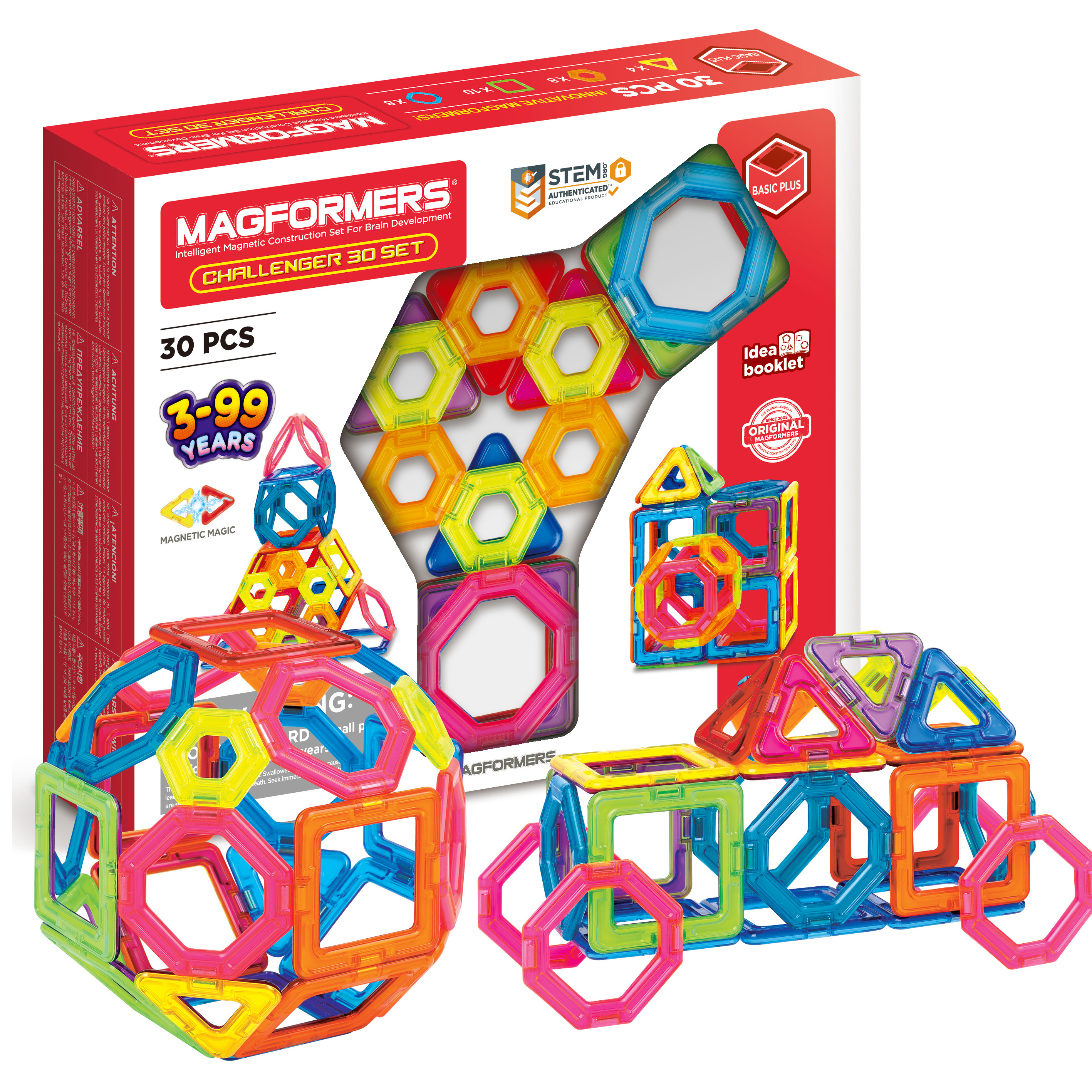 The Challenger 30 Set is ‘pure Magformers’ at its best, featuring eight new mini-hexagons and eight new mini-octagons shapes with 10 magnetic geometric squares and four triangles. It’s a great new take on one of Magformers' biggest-selling sets and there’s a new challenge to test your brain (not every side of the hexagons and octagons contain magnets!) so you have to work out how to model. Magformers is the leading magnetic construction toy, proven to inspire children's creativity and assist 3D brain development. Children can make 2D flat ‘net’ shapes then transform them into exciting 3D geometric structures while they are playing. Magformers structures are always super-easy to assemble, take apart, then build again – and clean away.