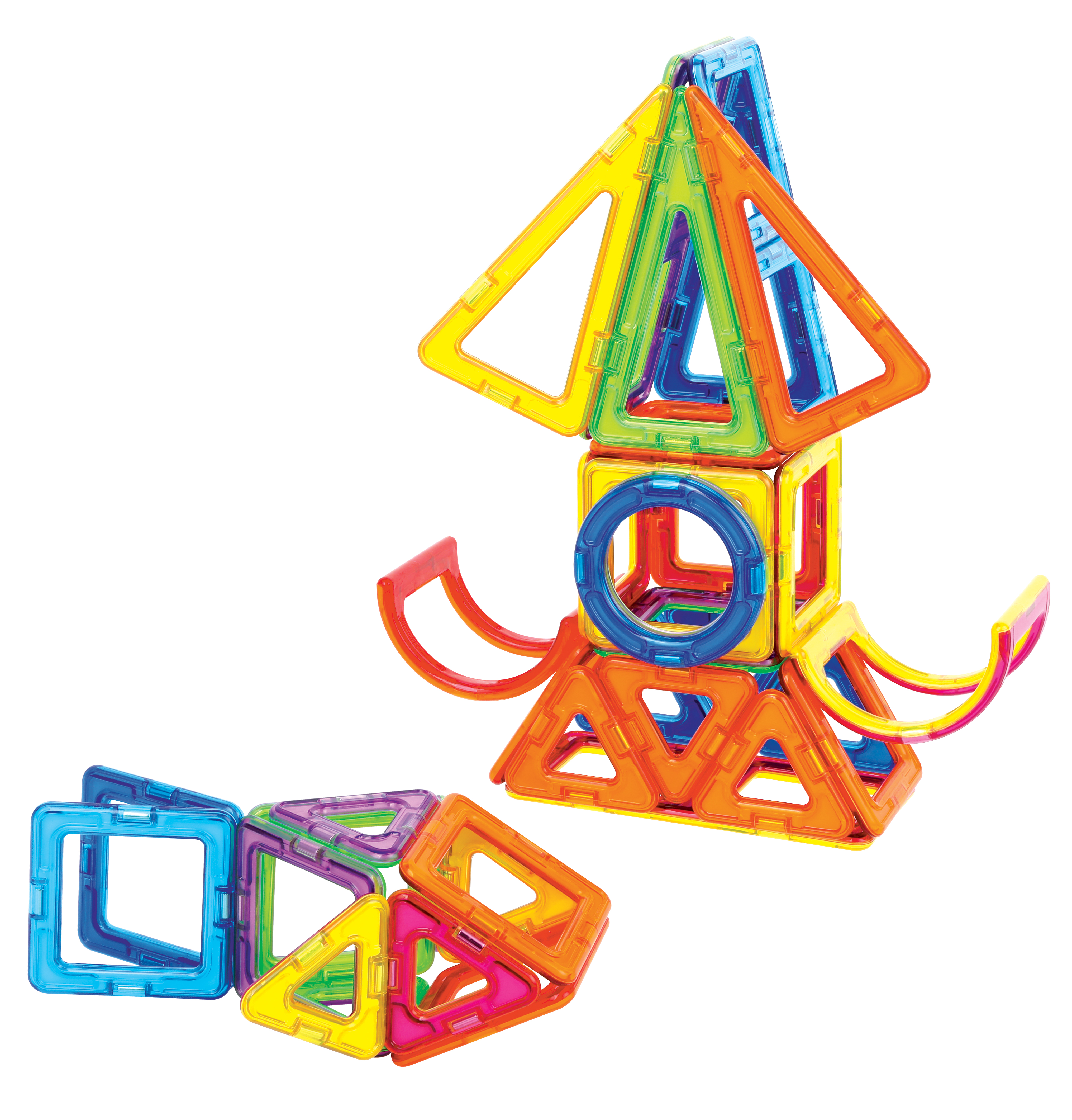 Produced because Magformers fans wanted a classic set with lots of different shapes, the Basic 42 contains all-magnetic pieces in seven magnetic shapes (squares, triangles, isosceles triangles, trapezoids, circles, rectangles, arches). It is jam-packed with shapes and delivers a wonderful creative-play experience through its sheer breadth of shapes. And, because it’s compatible with all other sets, it makes a fantastic addition to any existing Magformers collection. Free-spinning magnets are safely sealed within all the edge surfaces of each toughened ABS plastic Magformers piece. Because they can rotate in any direction, they always connect and never repel when two Magformers are brought together. This Rotating Magnets System (RMS) was pioneered by Magformers.
