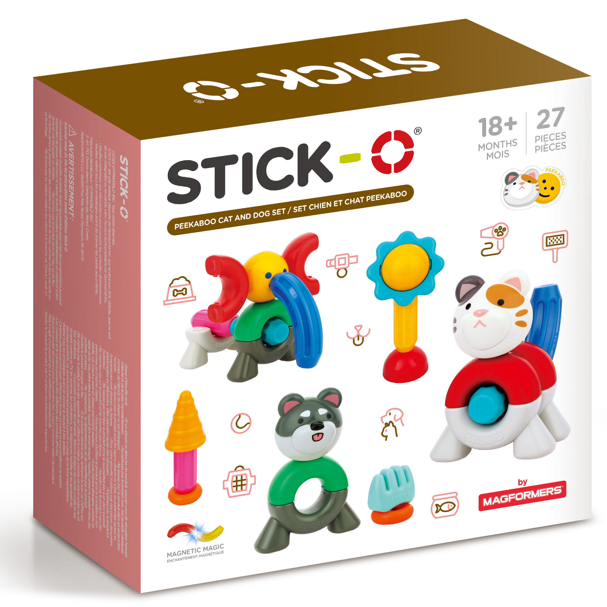 Any young child with a pet cat or dog (or both!) is going to fall in love with this fabulous magnetic construction toy. The cuteness is simply overflowing as they can use the 27-pieces to make a sweetpet cat and dog and a whole host of other little critters and creatures. Stick-O have added new dog and cat mask shapes to all-new body parts and their fave sticks and balls, to make a lovely, creative, fun building toy. Disc magnets are very safely sealed in every magnetic piece and because the rotate, they always connect. Stick-O is the chunky magnetic construction toy for little hands. Designed to be superfun, safe and durable, kids can have endless enjoyable hours making all sorts of cute and imaginative creations. It’s also a great introduction to the wonderful world of magnets. Stick-O is brought to you by Magformers - the world’s leading magnetic construction toy brand. Stick-O’s larger pieces are perfectly suited to pre-schoolers and younger children, bringing a whole new dimension to educational play using magnetic forces.