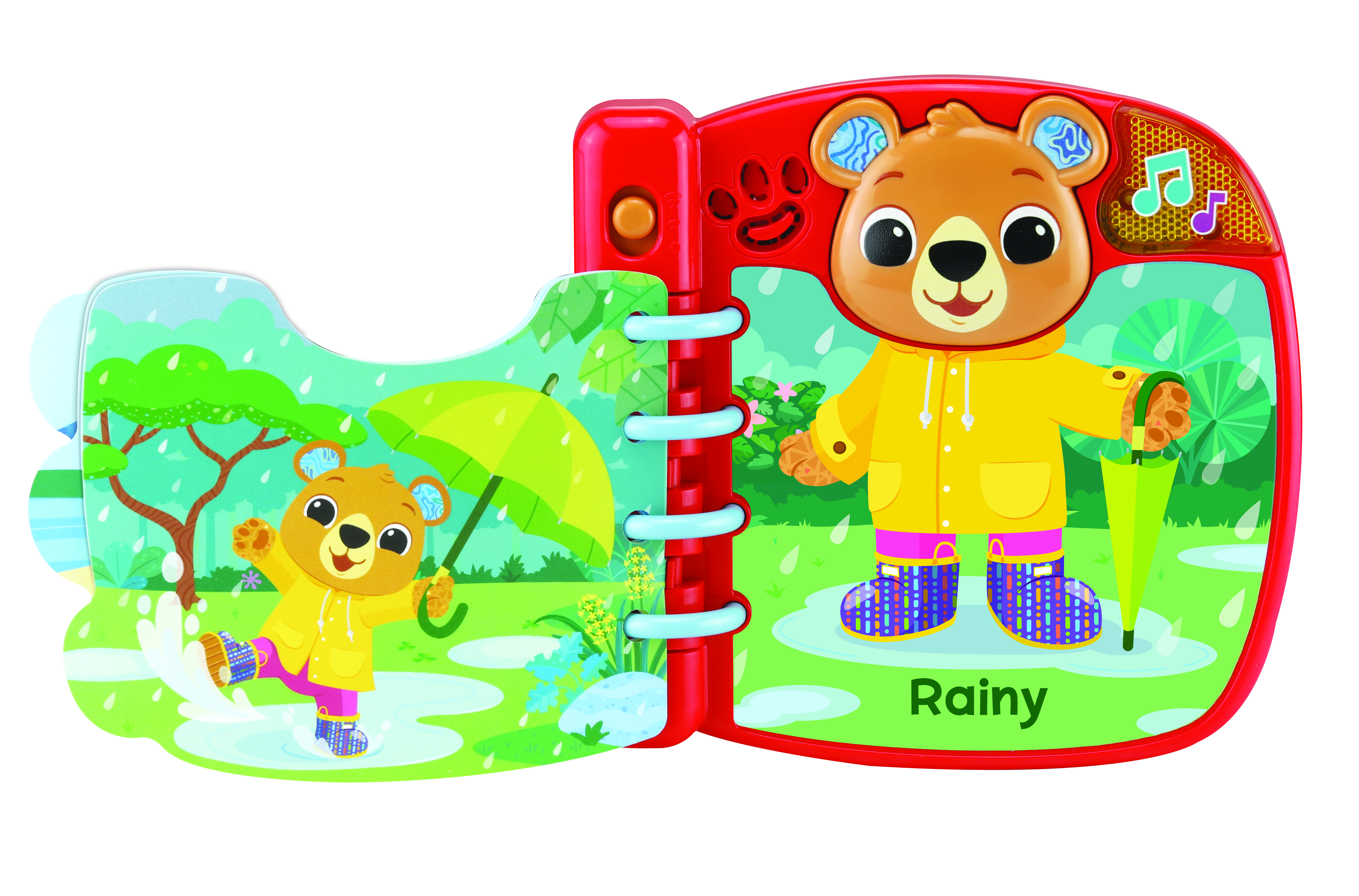 What is the weather like today? What should I wear? Help Bear decide what to wear depending on the weather. Is it rainy, hot or cold? By helping Bear, your little one will learn all about different weather concepts and the best clothes to wear! If it’s cold we wear a coat, if it’s hot, shorts are best or if it’s rainy we need our raincoats! Press Bear’s head to hear fun, encouraging phrases and turn the pages to discover fun songs and sound effects. Includes 3 sing-along songs and 15 melodies. Encourages language development and enhances motor skills. Intended for ages 12-36 months.