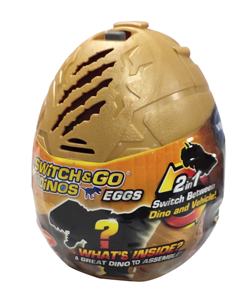 It's a Switch & Go Dinos surprise! Which Switch & Go Dino will you hatch?! Inside each Switch & Go Dinos Egg you will find pieces to assemble your very own 2-in-1 Dino Vehicle! Will it be the mighty T-Rex Race Car you uncover, the fierce Velociraptor Super Car, the powerful Triceratops Street Car or the swift Pterodactyl Helicopter?! Assemble up to 15 pieces to discover your Switch & Go Dino, and easily switch into a Dino and back again in just a few simple steps! Features light effects, fun phrases and cool sound effects! Collect them all! Let's Switch & Go! Intended for age 4+ years.