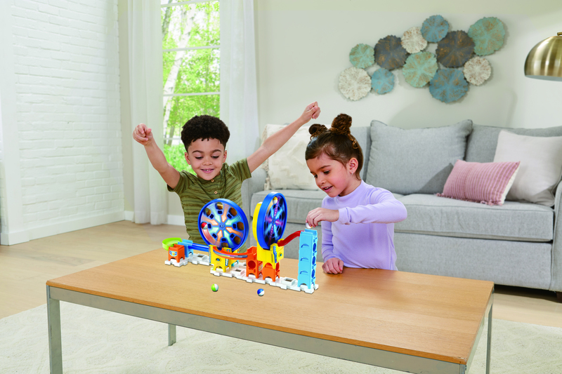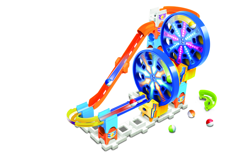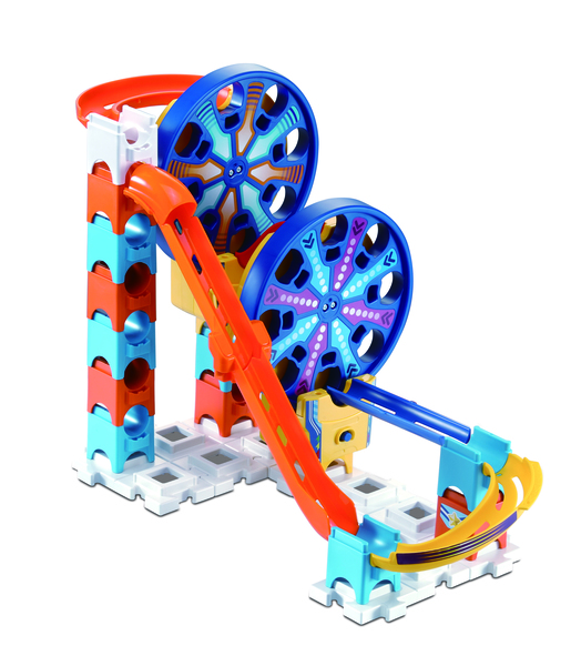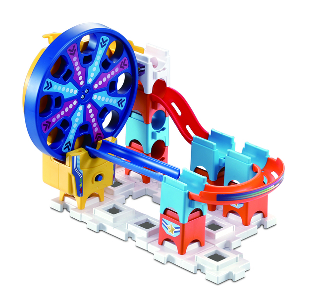 Step right up, step right up! It's the Marble Rush Fun Fair Set by VTech! What kind of exciting ride can you come up with, with this 26 piece play set? The Marble Rush Fun Fair Set features not 1, but 2 motorised Ferris Wheel modules, allowing for marbles to be spun from the bottom of the Ferris Wheel to the top! Can you create a continuous loop of your own? With 5 Marbles included, this set is ideal for Marble Rush beginners and pros alike! This play set is compatible with other VTech Marble Rush items, and features a colour-coded assembly guide. Intended for age 4+ years.