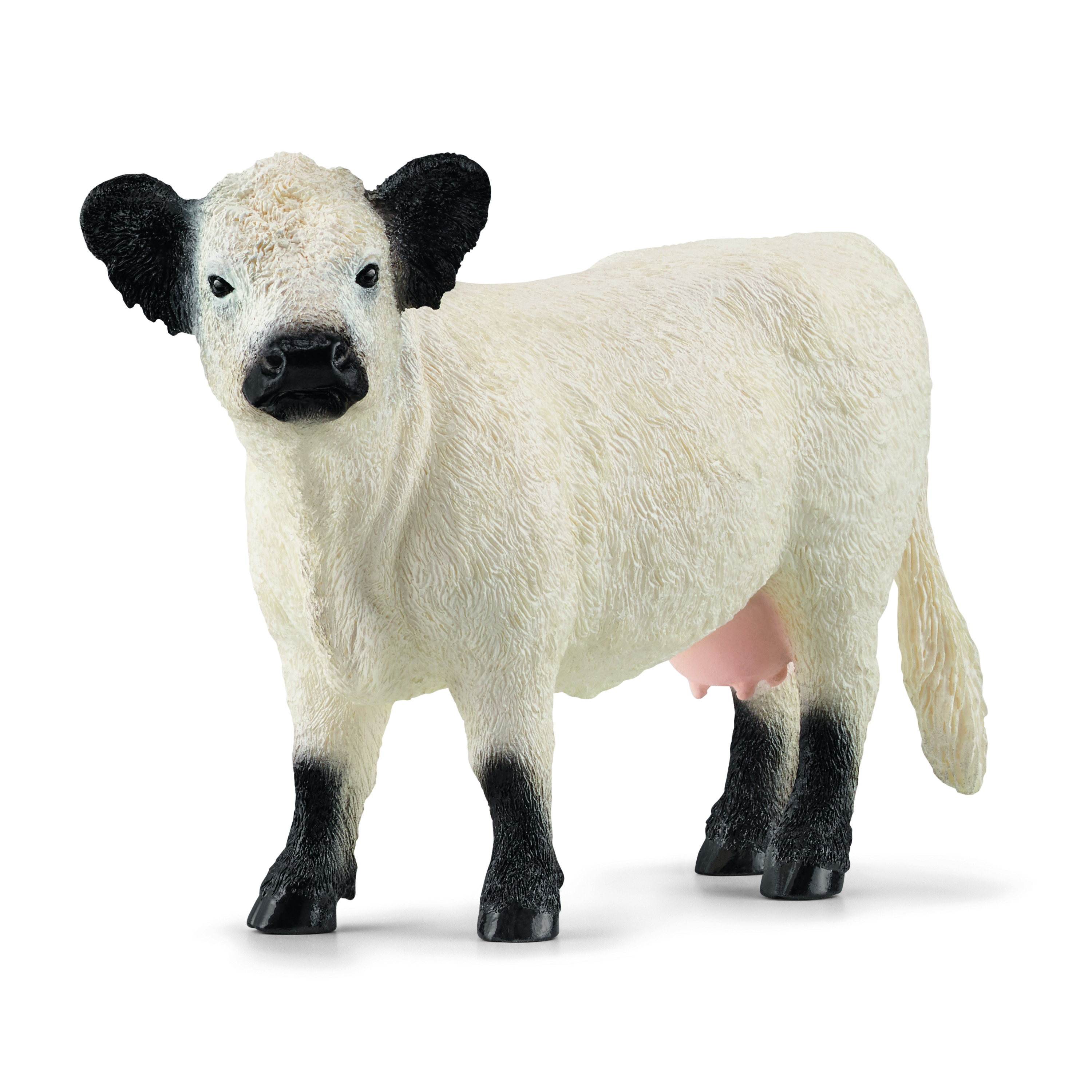 The white Galloway cow with her black ears and hooves and perky muzzle looks so cute! Her thick coat keeps her warm, so she can stay outside even in the coldest winters. But I’m sure she wouldn’t mind warming up in the playroom for a while!
