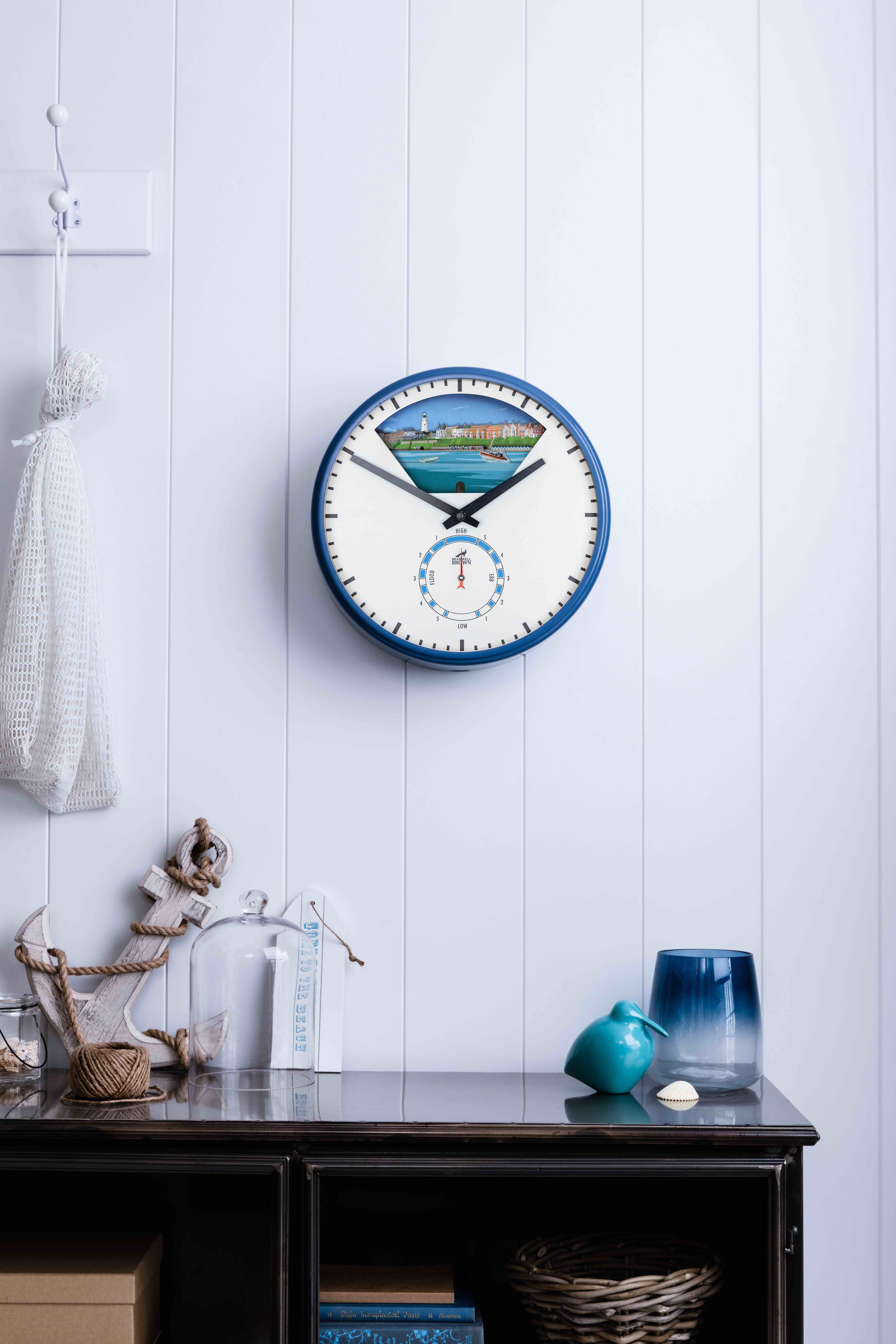 Depictiing one of Suffolk's finest coastal locations, sunny Southwold's seaside spirit is 'bottled' in this brilliant mechanically animated timepiece. Being hand-assembled in limited numbers, this Tide Clock is truly a home addition to cherish, whether you're near or far from the East Anglian coast.