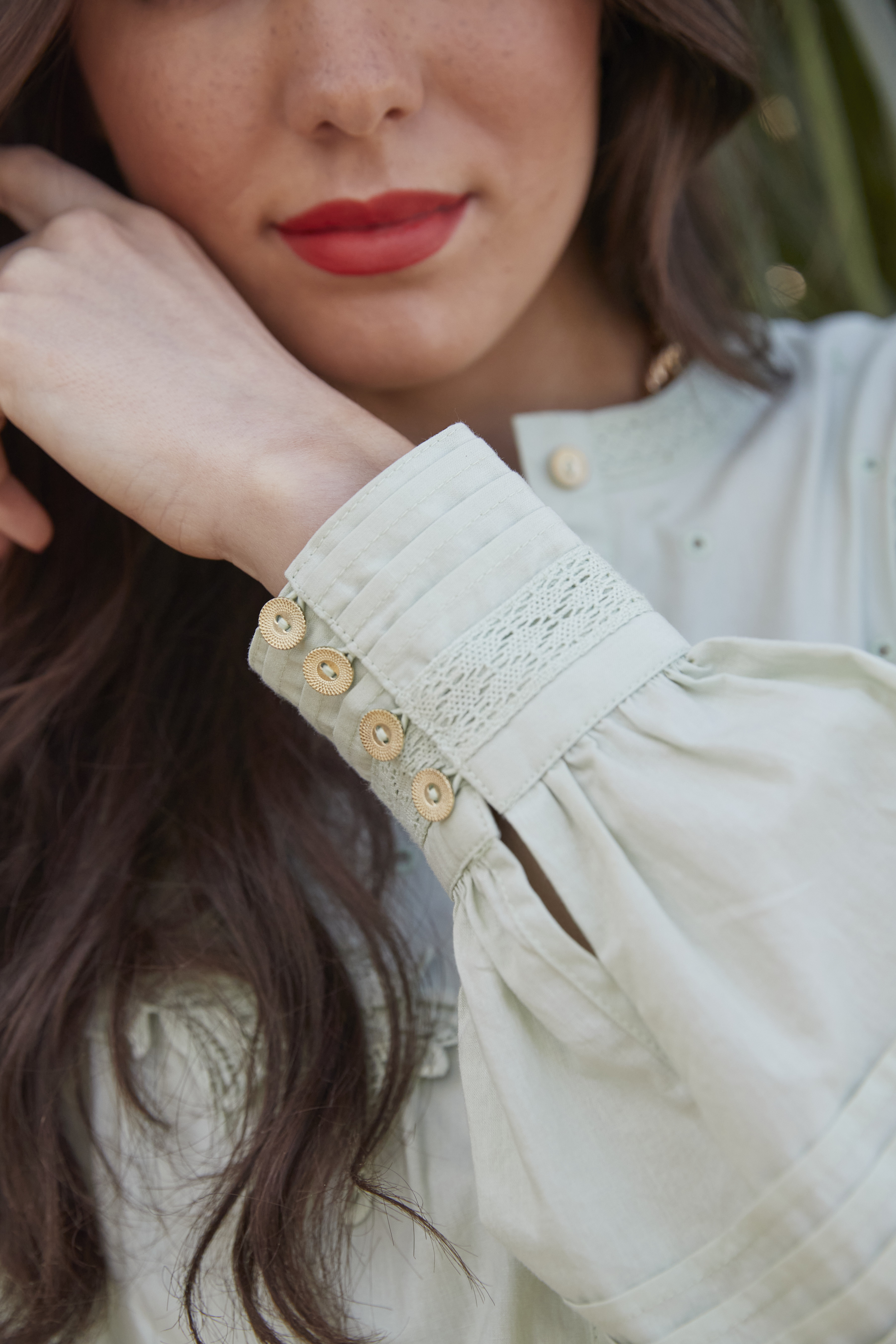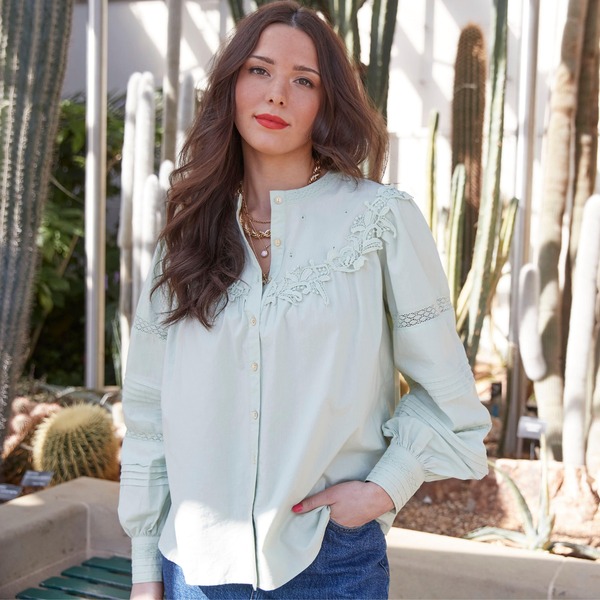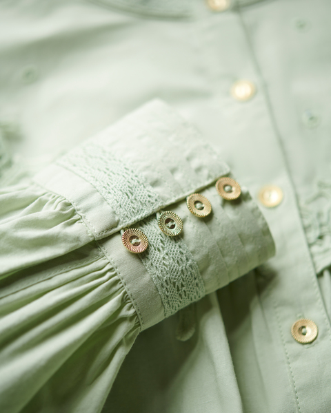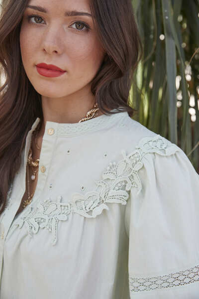 Lace Detail Cotton Shirt Sage