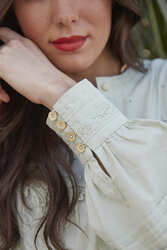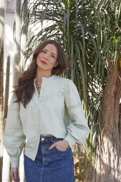 You loved the original so we've introduced a new colour way of our Lace Detail Cotton Shirt. This classic piece will never go out of style, upgrade your go-to shirt with a little lace for an effortless spring summer refresh. In a soft Sage, this shirt will add a touch of ethereal elegance to your wardrobe. Made from 100% Cotton, this shirt will elevate any basic outfit and can be worn multiple ways for the ideal transitional look. The gold button detailing is the perfect feminine touch along with lace trim on the sleeve and across the yoke with eyelet embroidery details. Why not style it with our Denim Midi Skirt for the ultimate on trend outfit this spring season.