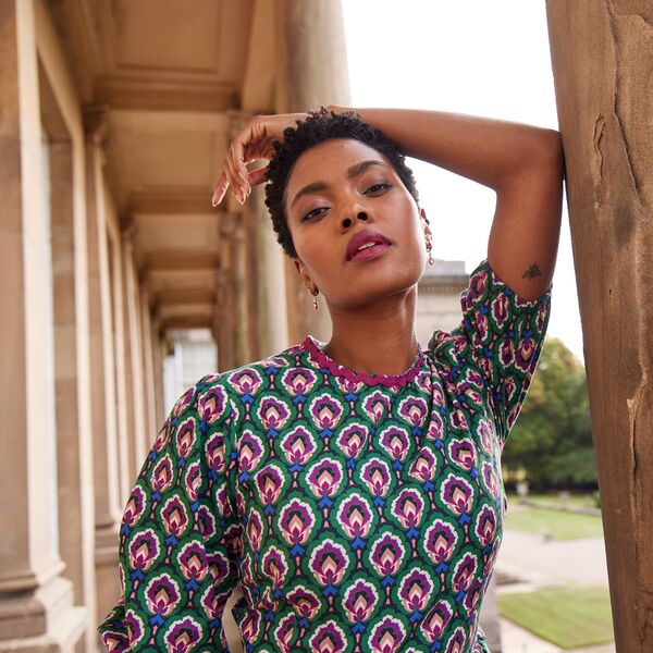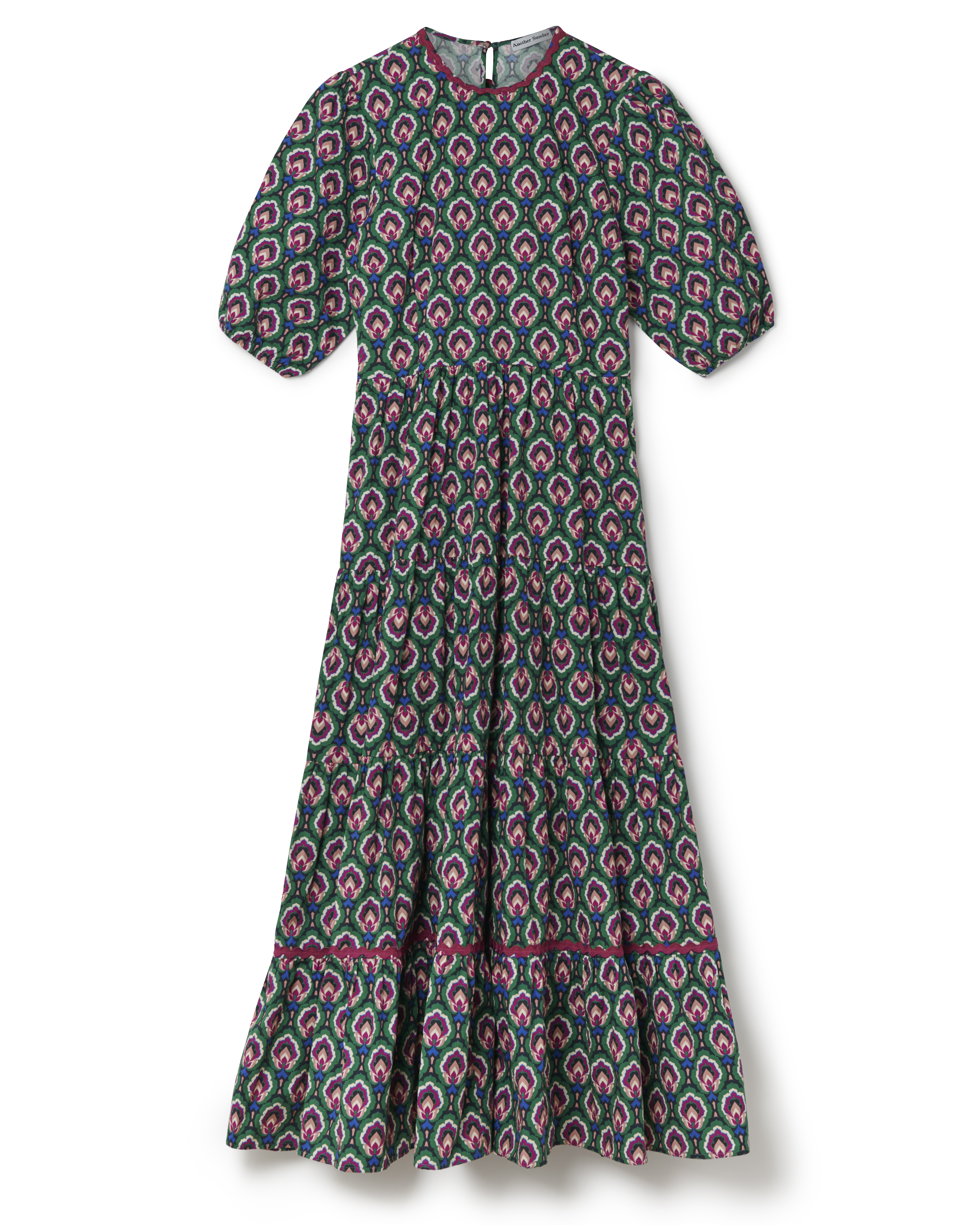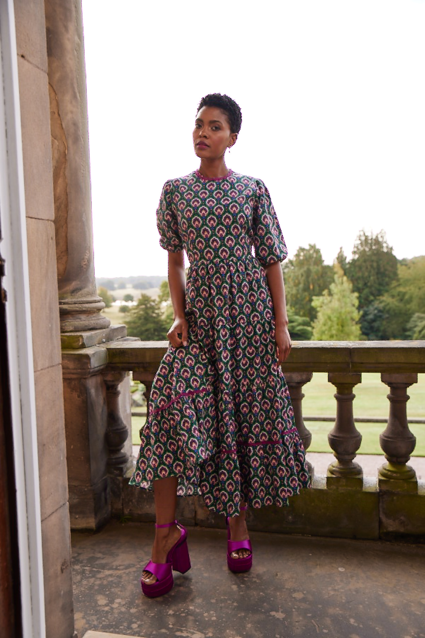 Made in the dreamiest print this dress is elegant, feminine and the perfect show stopper. It has a 3 tiered skirt with all the skirt volume you can ask for - with pop colour trim detail on the neck & skirt for those extra details. This is one of our must have shapes for and is the perfect dress up and down dress.