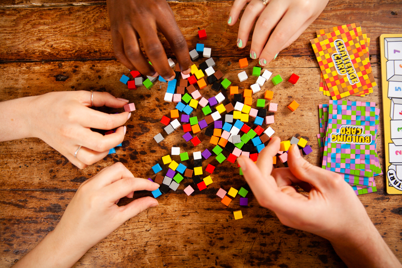 A party game where instead of drawing things for people to guess, you build them using multi-coloured wooden blocks instead. Race to build one of the secret objects on your card, then see if anyone can guess what it is.