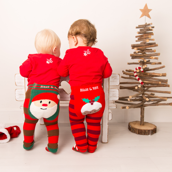 Christmas would not be complete without a Christmas Outfit … Christmas is a magical time, be it babies first Christmas, or when the family make Christmas memories together, Blade and Rose have the perfect outfit for all occasions. Choose from Santa, Festive Reindeer, or the brand-new Christmas Pudding collection, you could even mix and match all three. The traditional bright reds and greens all coordinate together. Choose from leggings, long sleeved tops, socks, bibs, hats, and booties. Perfect for Christmas Eve boxes, or as stocking fillers. There are also gift boxed sets of socks and multi packs of bibs. Available in sizes 0 – 4years (socks and hats 0 – 6yrs).
