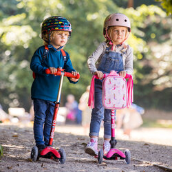 Wheels of wonder in all shapes and sizes. For kids who know their trains from their trucks. Our Micro scooter accessories have been designed with both fun and safety in mind. Our iconic Micro helmets offer the perfect fit for children’s heads – in a range of eye-catching colours and designs that ensure scooting safely is never a chore. Our smart range of scooter bells and scooter lights ensure that riders will always be seen and be heard. Our coordinating accessories help every child make their scooter their own – whether chasing monsters or seeking unicorns. From bags to gloves, ribbons to bottle holders, our Micro accessories bring a dash of colour and a dollop of loveliness to every ride. Whether customising or revamping, adding safety or adding fun, we have you covered.