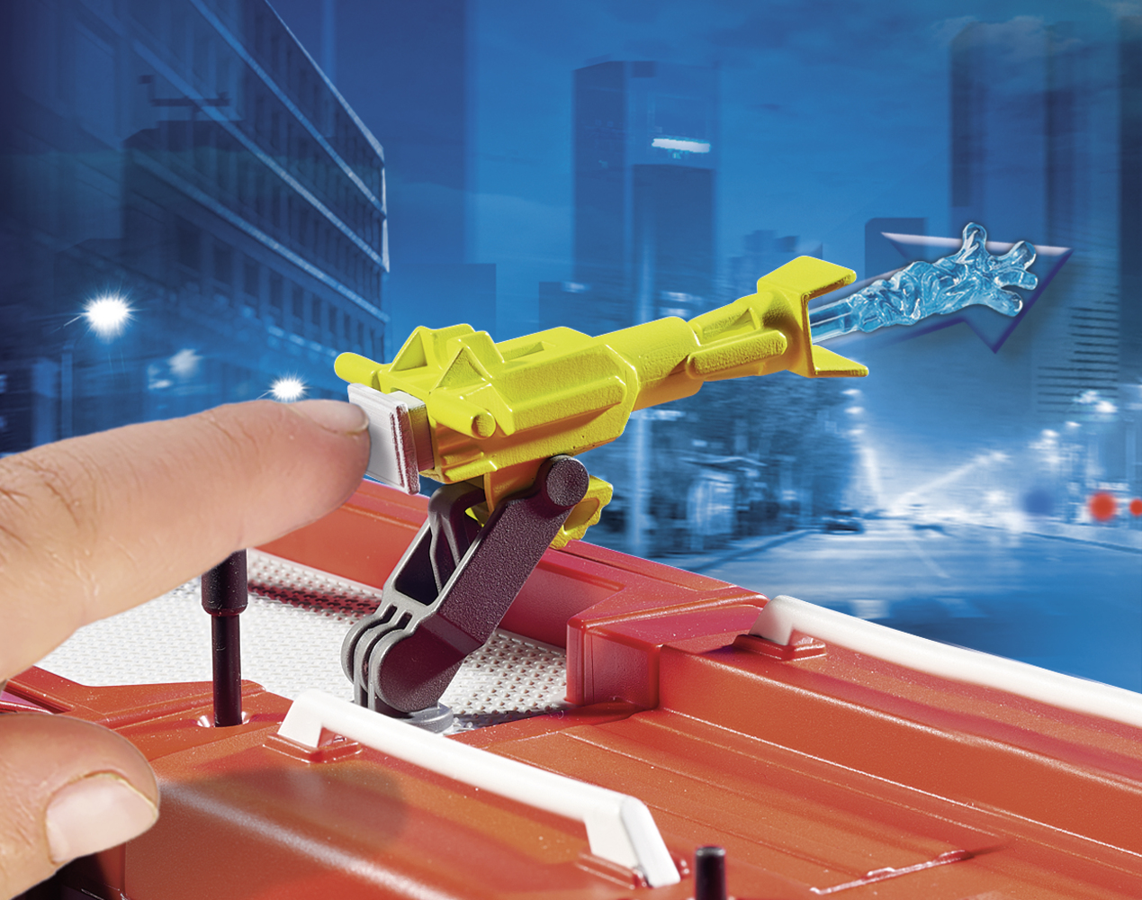 An RC-compatible vehicle with a working water cannon and functioning lights and sound (2 x AAA batteries required). Includes plenty of storage space for firefighting equipment and can accommodate up to four figures in the cabin. Combine this set with the water pump from the Firefighters with Water Pump (9468 - sold separately) to spray real water on blazing fires. Dimensions: 11 x 5.1 x 6.3 in (LxWxH).