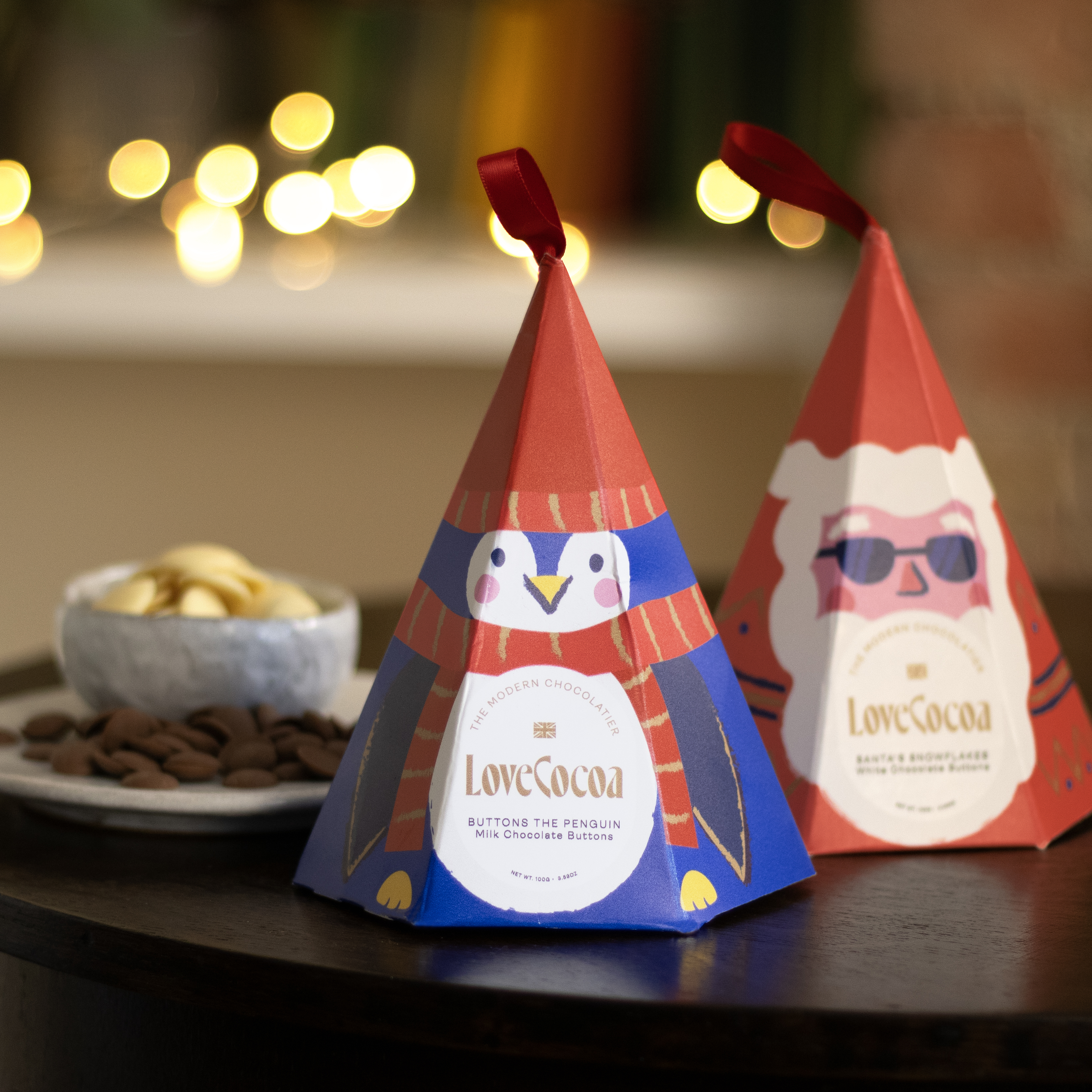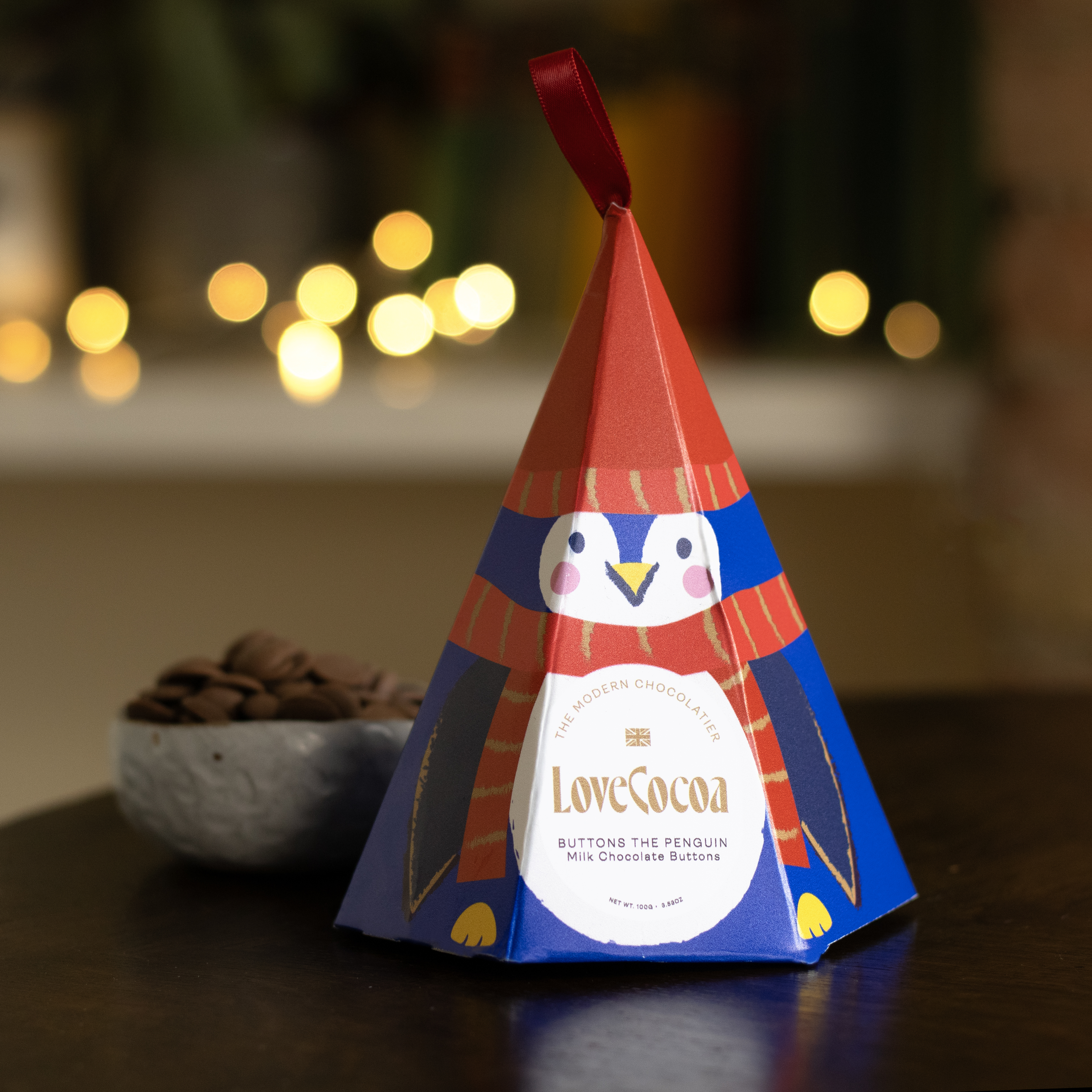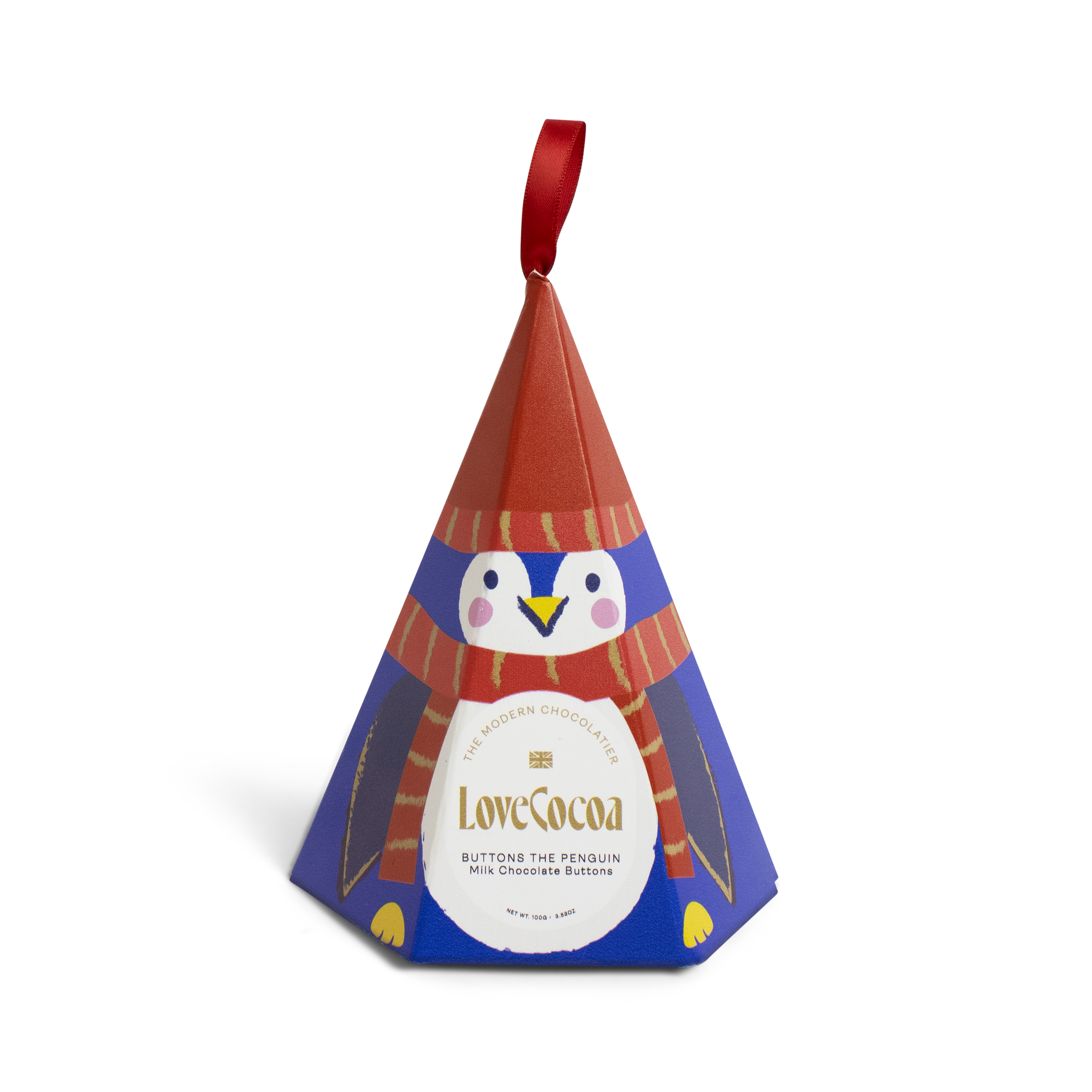 The cutest Christmas treat around! Buttons the Penguin, made from creamy milk chocolate buttons. These can be hung from the tree, and can also be used to create delicious hot chocolate!