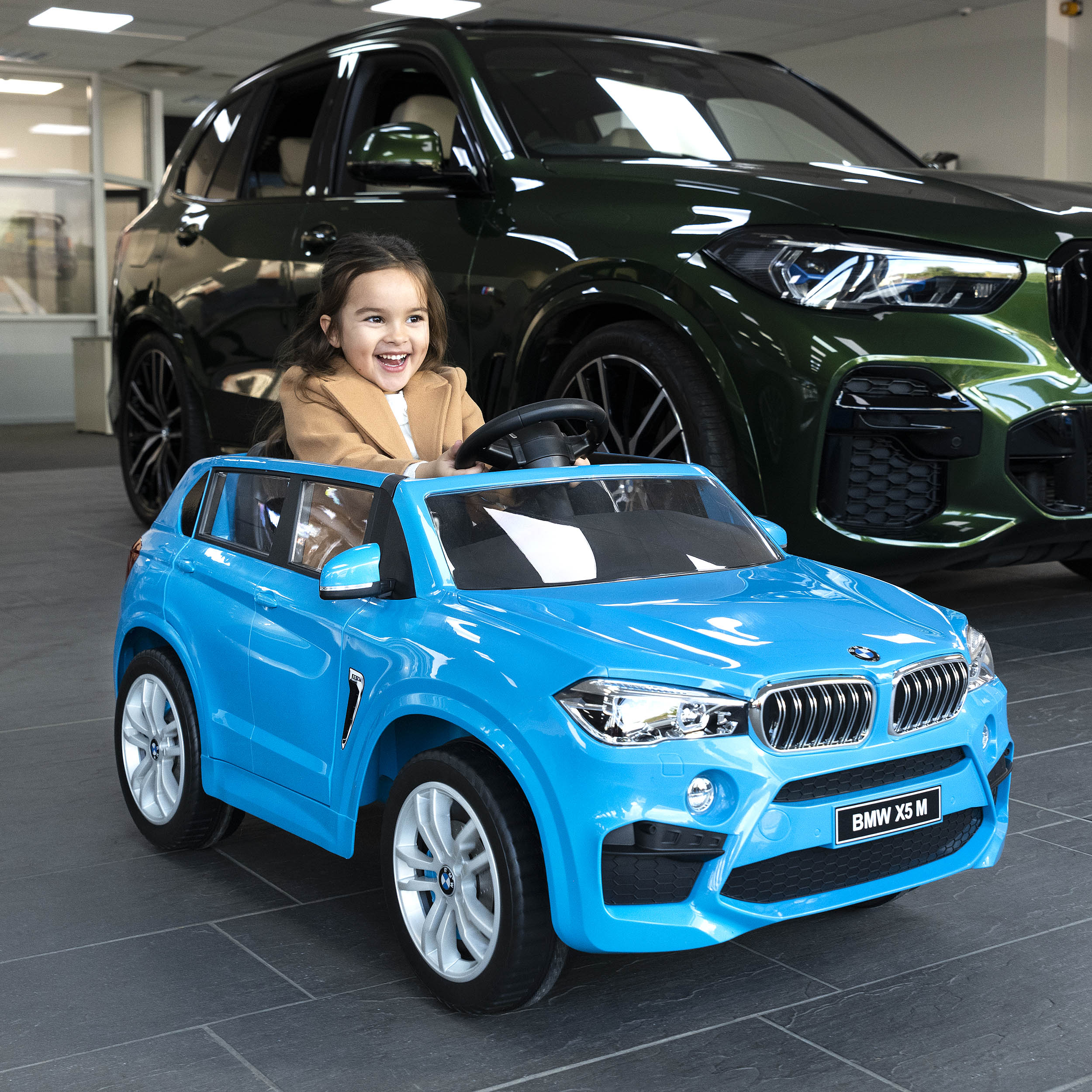BLACK FRIDAY DEAL WAS £399.99 NOW £299.99 A new breed of grandeur, the Xootz BMW X5 M Electric Ride-On makes a powerful statement. This officially licensed BMW ride-on features all the details of the full-scale powerhouse including the kidney grille, sculptured bonnet, and unmistakeable working front lights. Great for indoors or outdoors, the Xootz BMW X5 M Electric Ride-On will make light work of carpet, garden terrain or smooth tarmac thanks to its front wheel suspension. With a 3-speed drive, reverse gear and fully operational realistic steering wheel, little ones can practice their driving in the ultimate driving machine. If they are too young to take to the wheel parents don’t need to worry, the included wireless remote control allows them to take control. The BMW X5 ride-on features two opening doors, a realistic steering wheel, an adjustable seat with seatbelt and an internal MP3 player with AUX input. Beneath the bonnet are two motors which are powered by the rechargeable 12V battery. When you can finally get your child away from the car, you can easily transport it and store it out of the way using the carry handle and wheels.