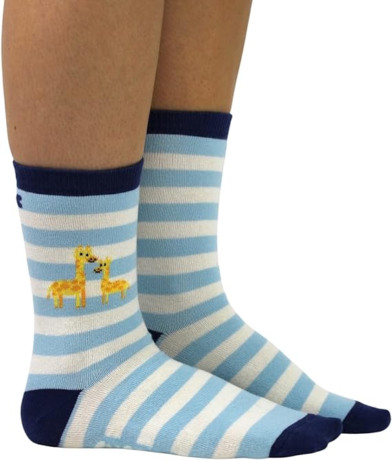 Step into a world of whimsy with our Mummy & Me Lemon Socks, designed to weave an enchanting bond between mothers and their little ones. Picture this: a delightful duo of giraffes, a mother gracefully guiding her playful calf, captured in vibrant detail on these socks. Embrace the joy of twinning with your mini-me as you both strut around in matching style. Dive into the soft embrace of our striped white and baby blue pattern, complemented by a regal touch of royal blue on the heel, toes, and rim. These socks aren't just an accessory; they're a celebration of the unique connection shared between mother and child. So, kick up your feet, show off your adorable giraffe companions, and let the world witness the magic of your special bond! These socks are made of: 75% Cotton, 24% Polyamide, 1% Elastane