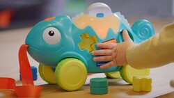 Part of the new Play+ Infant & Toddler toy and book collection from Ravensburger. Launching in September 24. Just like the colour-changing 'magic' of a real chameleon, with its many ways to play, the 4-in-1 Colour & Shape Sorter Chameleon can adapt too. This versatile activity toy fosters early developmental milestones through playful learning and discovery. It offers three game modes bringing fun as children grow, taking them into the world of colours and shapes. All the while the chameleon entertains with happy, jungle-themed tunes as children play and learn with colourful light effects too. And when little ones are ready to get on the move, this cute friend can be a pull-along too! Suitable from 12m+.