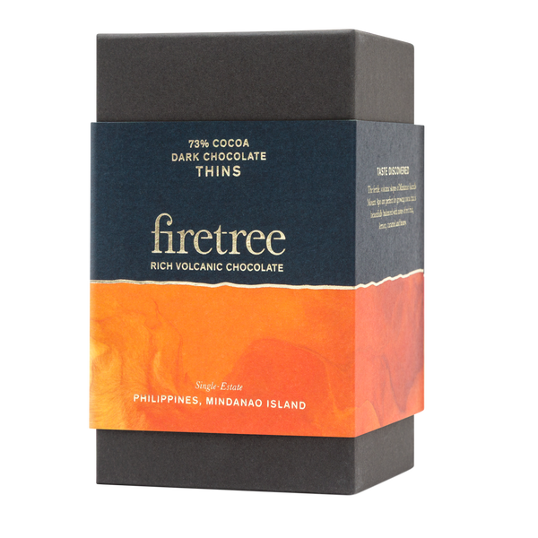The Philippines is the only one of our cocoa origins in the northern hemisphere. The small island of Mindanao lies just within the 'Goldilocks zone' for cocoa growing - an area 10 degrees either side of the equator. The conditions here are the ideal combination of tropical rainforest and volcanic soil for growing a cocoa with a distinctive chocolate flavour complimented by layers of citrus, honey and caramel notes. We believe that chocolate thins really are the perfect way to enjoy superior chocolate and we're certain ours won't disappoint. Presented in a handsome rigid card box containing 25 chocolate thins (150g).
