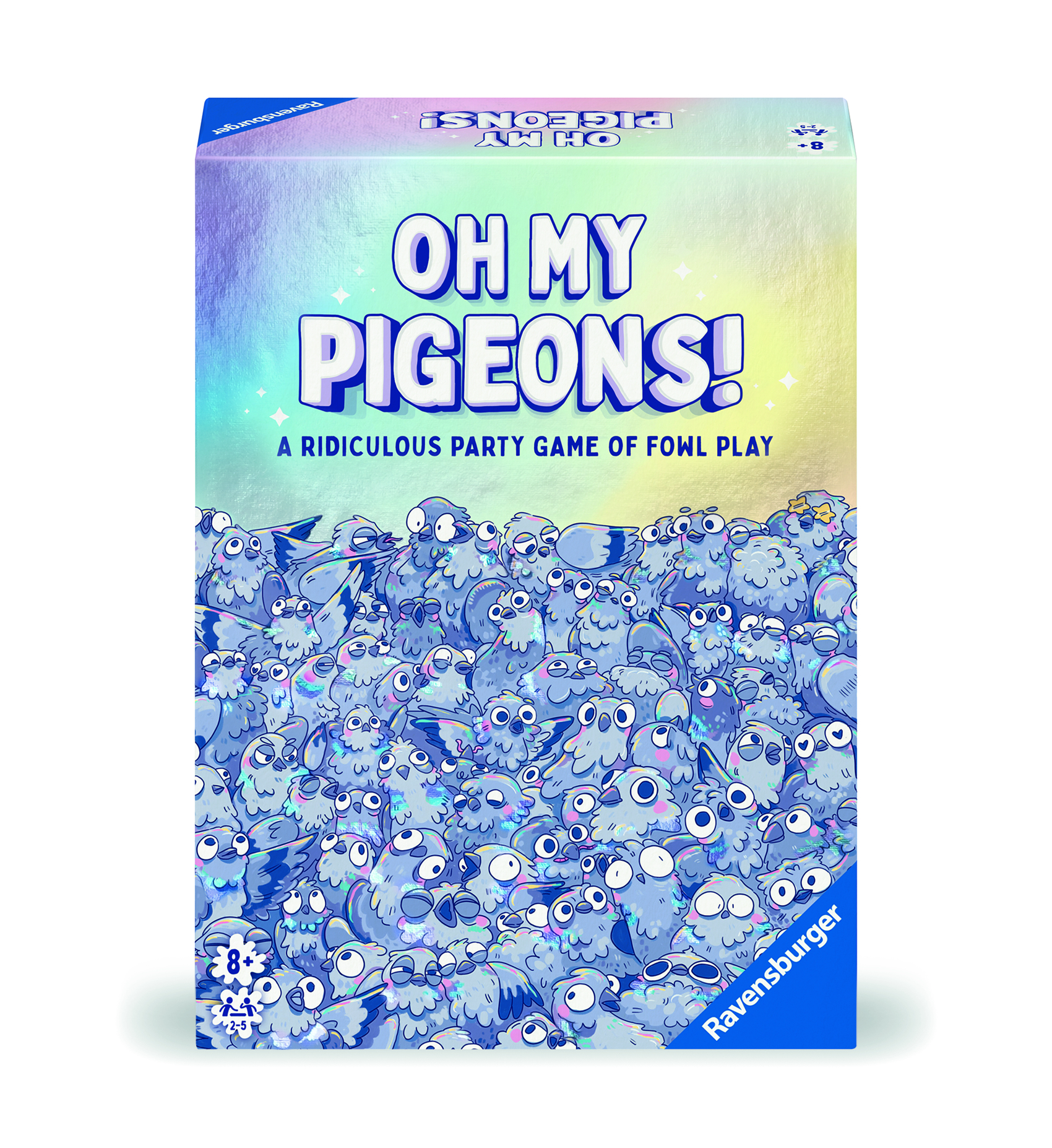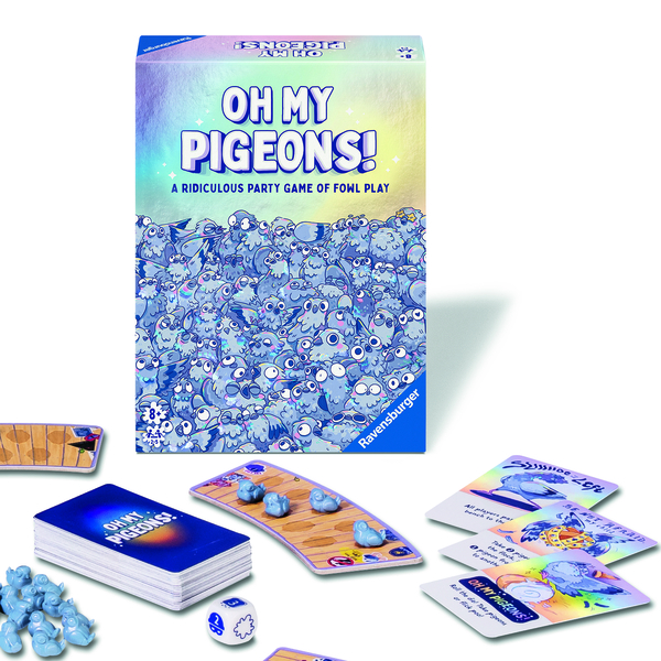 In this ridiculous party game of fowl play, be the first to fill your bench with pigeons. Play hilariously illustrated cards allow you to collect pigeons from the middle of the table or even steal them from your neighbours’ benches. When you roll the die, you might get 'Flick the Poo' and have to flick it at an opponent’s pigeons to knock them off their bench! Suitable from age 8+ and for 2-5 players.