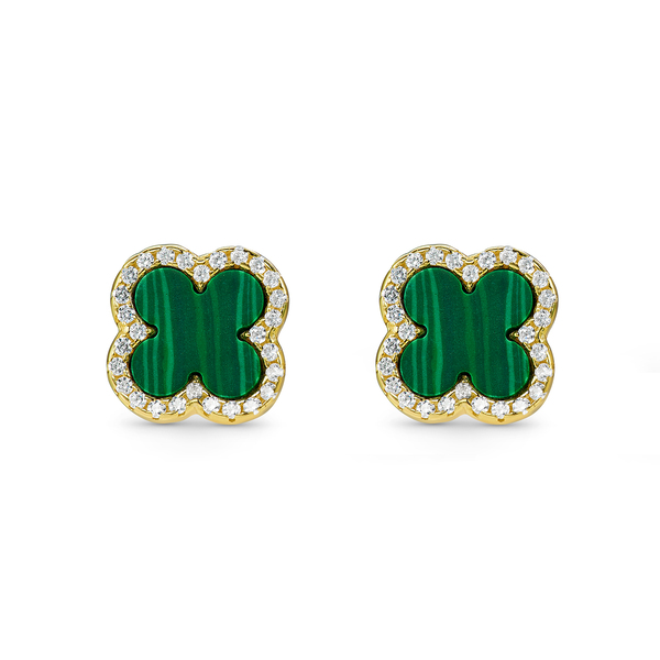 Adorned with captivating details, these Yellow Gold Plated Cubic Zirconia Malachite Clover Earrings will add a touch of refined charm to every ensemble.