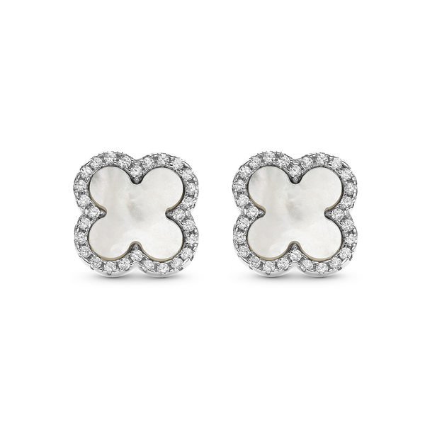 Radiate elegance and grace with these Silver Mother of Pearl Clover Earrings. Exuding sophistication and timeless beauty, elevate every ensemble with the alluring charm of these enchanting earrings.