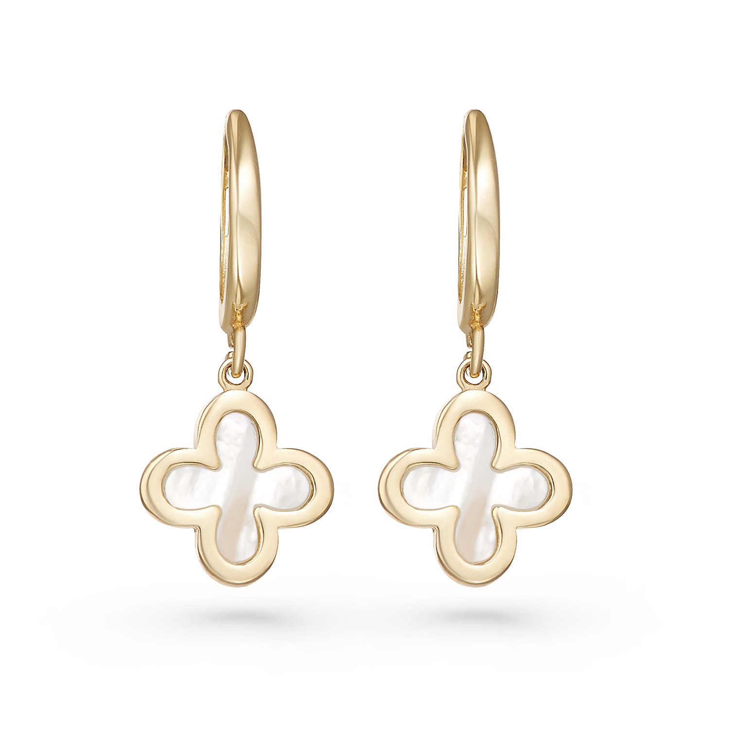 9ct Yellow Gold Mother of Pearl Clover Hoop Earrings